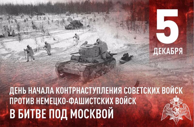 pДень воинской славы России — День начала контрнаступления советских войск против немецко-фашистских войск в битве под Москвой (1941 год) — установлен Федеральным законом № 32-ФЗ от 13 марта 1995 года «О днях воинской славы (победных днях) России». Он отмечается ежегодно 5 декабря./p p /p p5 декабря 1941 года, началось контрнаступление советской армии под Москвой. Именно в этот день началась активная фаза наступления на широком фронте от Калинина на севере до Ельца на юге, в итоге которой немецко-фашистские войска потерпели свое первое, но не последнее поражение./p p /p pВ декабре 1941 года на подступах к столице немецкая армия в первый раз потерпела серьезное поражение, заставившее ее начать отступление./p p /p pМосковская битва 1941 года условно может быть разделена на два этапа. Первый оборонительный этап длился с 30 сентября по 5 декабря 1941 года, а второй наступательный с 6 декабря по 20 апреля 1941 года./p pВ итоге, фланговые ударные группировки врага были отброшены от Москвы на 100-250 километров, разбиты 38 немецких дивизий, освобождено свыше 11 тысяч населенных пунктов. Все это создавало благоприятные условия для окружения группы армий «Центр», а также сняло угрозу, нависшую над столицей СССР./p pМемориальный музей им. Ф. Карими/p