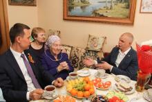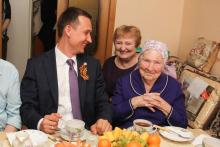 pem07.05.2018 с/emвой 95-летний юбилей отметила жительница Альметьевска - труженица тыла Анна Александровна Яшина. В этот знаменательный день юбиляршу пришли поздравить глава района Айрат Хайруллин, председатель Совета ветеранов Василий Самойлов, начальник управления социальной защиты Кадрия Гиматдинова, глава ТОС12 Николай Жалнин, юнармейцы, родные и друзья именинницы./p pГлава района зачитал Анне Александровне официальное поздравление Президента Владимира Путина с 95-летним юбилеем, вручил памятные подарки и пожелал имениннице крепкого здоровья и долголетия. В ходе теплой беседы за чашкой чая труженица тыла рассказала самые интересные и памятные события своей славной трудовой биографии, а также поблагодарила гостей за заботу и внимание ./p pАнна Яшина родилась 7 мая 1923 года в деревне Танаевка Азнакаевского района. Всю войну Анна проработала в родном колхозе. После войны она закончила среднюю школу, поступила в педучилище в г. Бугульме. Успешно окончив педучилище , работала учителем в деревнях Алькеево и Мальбагуш Азнакаевского района. В 1950 году вышла замуж за Яшина Николая Павловича, с которым они уехали в город Осинники. Николай Павлович работал шахтером шахты №4 треста «Молотов» Кузбасс-уголь. В Осинниках Анна Александровна устроилась на работу в школу, преподавала русский язык и литературу./p pВ Альметьевск семья Яшиных переехала в 1953 году. Николай Павлович устроился на работу в СМУ НГДУ «Альметьевнефть». В 1990 году оттуда ушел на пенсию. С 1953 года по 1975 год, до выхода на пенсию, Анна Александровна работала заместителем главного бухгалтера треста «Востокмонтажгаз». Анна Александровна и Николай Павлович вот уже около 70 лет живут вместе – рука об руку. Будучи людьми трудолюбивыми и крепкими духом, умеющими преодолевать трудности, эти прекрасные люди являются примером удивительной стойкости и жизнелюбия для молодого поколения./p pГлава района во время беседы сделал комплимент юбилярше. Действительно, несмотря на свой благородный возраст, Анна Александровна выглядит довольно моложаво и у нее можно поучиться тому, как радоваться жизни. Каждый день она начинает с зарядки./p p- У меня есть своя технология, свой комплекс упражнений. Зарядка – это и есть секрет моего долголетия. Я люблю ходить пешком и стараюсь двигаться быстро. Слава богу, мне это удается. Наверное, я - счастливый человек. Дай бог всем прожить такую долгую и интересную жизнь, — отметила юбилярша./p pВ завершение своего визита Айрат Хайруллин пожелал юбилярше и ее мужу крепкого здоровья и благополучия, а также пригласил их на парад, который пройдет в Альметьевске 9 мая на площади Ленина./p