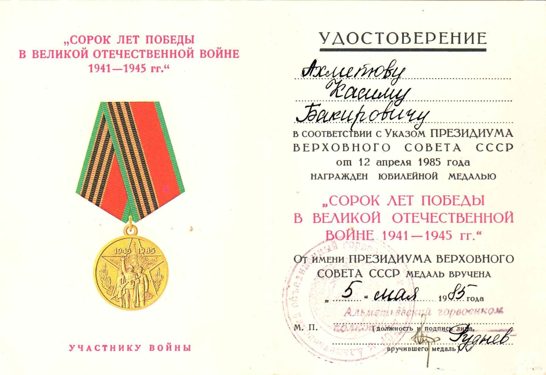 18 ноября 1941 года мобилизован. Участвовал на I - Украинском фронте 45 стрелковом полку минометчиком. Участвовал в освобождении Киева, Белой Церкви. 9 января 1944 года Касим Бакирович с лейтенантом получили задание. Не доезжая 18 км. от г. Виницы встретились с группой немецких автоматчиков. Получил ранение. Пришел в сознание медсанбате. На санпоезде отправили в Самарканд. До мая лежал в эвакуированном госпитале в Самарканде. С мая направили на учебу в военное училище в город Саратов. Хотели отправить против бандеровцов на Украину, но война окончилась.