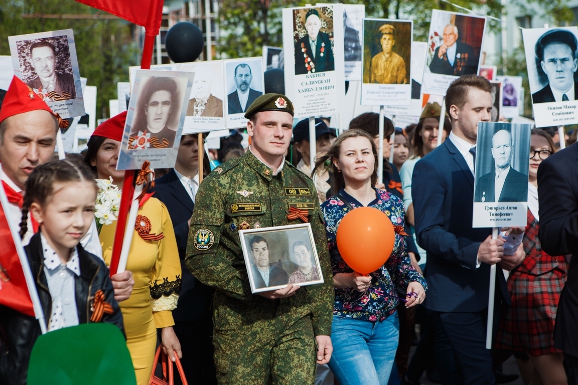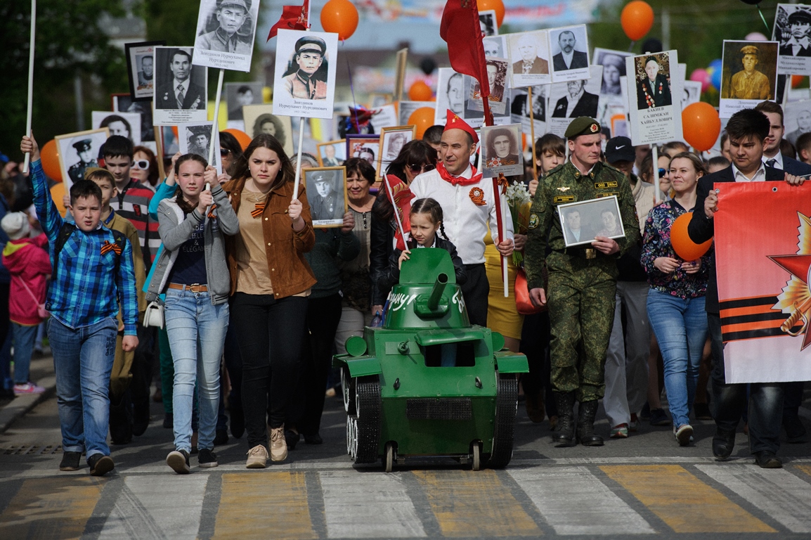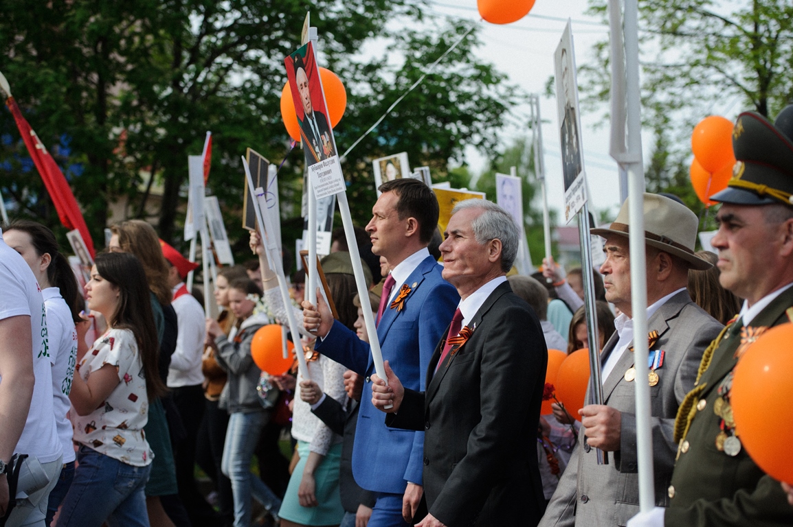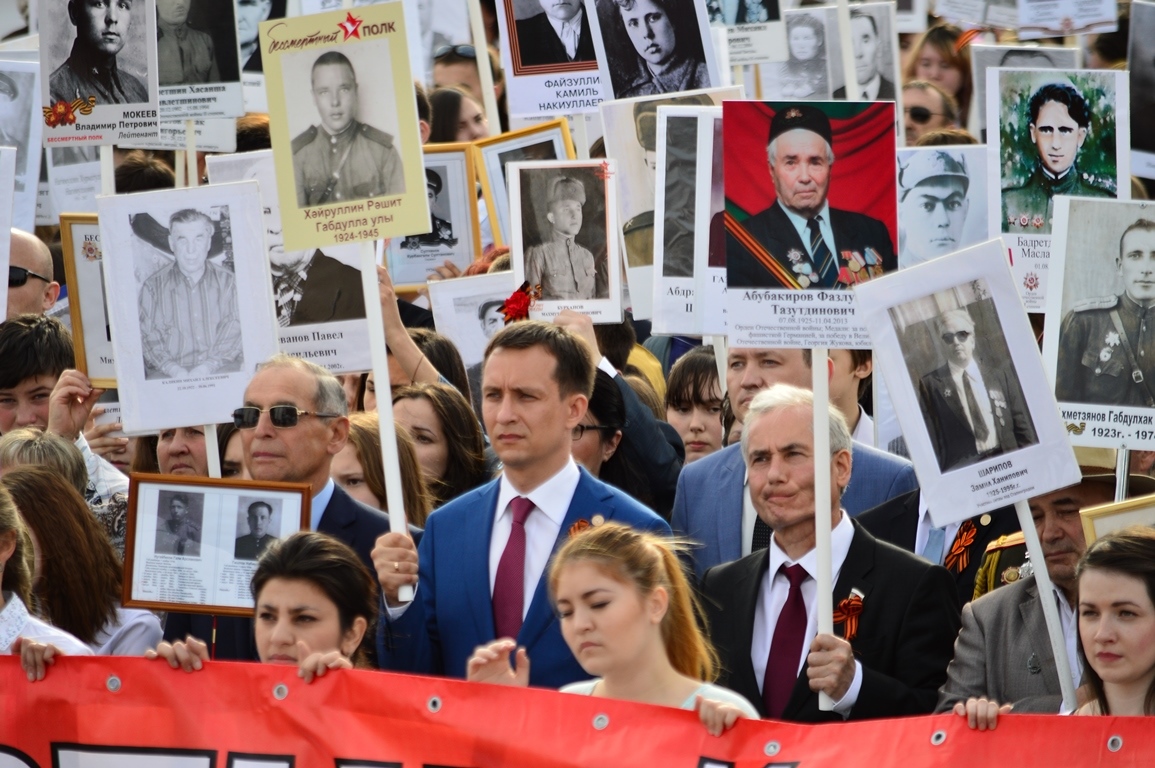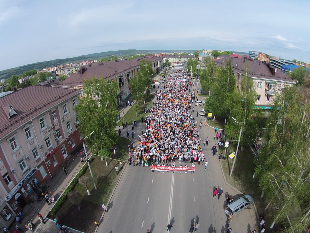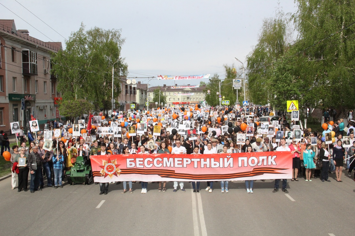 pВ День Победы "Бессмертный полк" прошел торжественным маршем по улице Ленина от Молодежного центра до площади Нефтяников. Дети, внуки и правнуки фронтовиков вышли сегодня с портретами своих родственников. Во всероссийской акции, который проходит в Альметьевске второй год, приняли участие все, кто хотел поведать миру о родственниках, прошедших через войну./p pПятитысячное шествие возглавил глава района Айрат Хайруллин. Айрат Ринатович держал в руках портрет своего деда Рашита Хайруллина, который ушел на фронт и погиб в 1945 году при освобождении города Дрогобич. Депутат Государственной Думы РФ Ришат Абубакиров нес портрет своего отца Фазлытдина Тазетдиновича Абубакирова – ветерана войны./p pПод гимн «Бессмертного полка» колонна вошла на площадь Нефтяников. Далее состоялся показ видеоролика «Другое время». Звучала песня «А нам нужна одна Победа» из кинофильма «Белорусский вокзал». Участники акции присоединились к исполнению песни. После все участники исполнили «Песню о солдате» с трансляцией текста на экране./p pВажно отметить и то, что с каждым годом количество участников акции «Бессмертный полк» становится все больше. В этом году к общественной международной акции присоединились 40 стран. К маршу памяти присоединяется и весь мир – впервые он стартует в Лондоне, на Трафальгарской площади. /p pАльметьевск продолжает отмечать День Победы. После шествия колонны «Бессмертного полка» альметьевцам был предоставлен «открытый микрофон». Пользуясь возможностью, каждый желающий смог поздравить своего деда, бабушку, близких, родных и друзей с Днем Победы, прочитать стихи, спеть песни, посвященные Великой Победе. В 19.00 часов минутой молчания почтим память не вернувшихся с полей сражения. Далее жителям и гостям города будет представлена вечерняя программа с участием кавер-группы «Вегас». Завершатся праздничные мероприятие в 22.00 праздничным салютом./p pstrongРезеда Исмагилова, газета «Альметьевский вестник»/strong/p pstrongИспользованы фотографии/strong фотостудии "Колибри" и группы Аэрофотосъемка Альметьевск/p