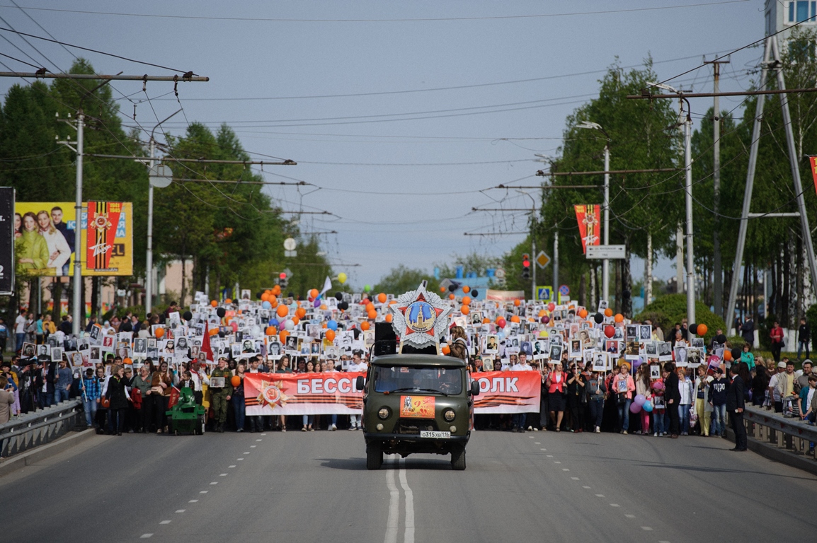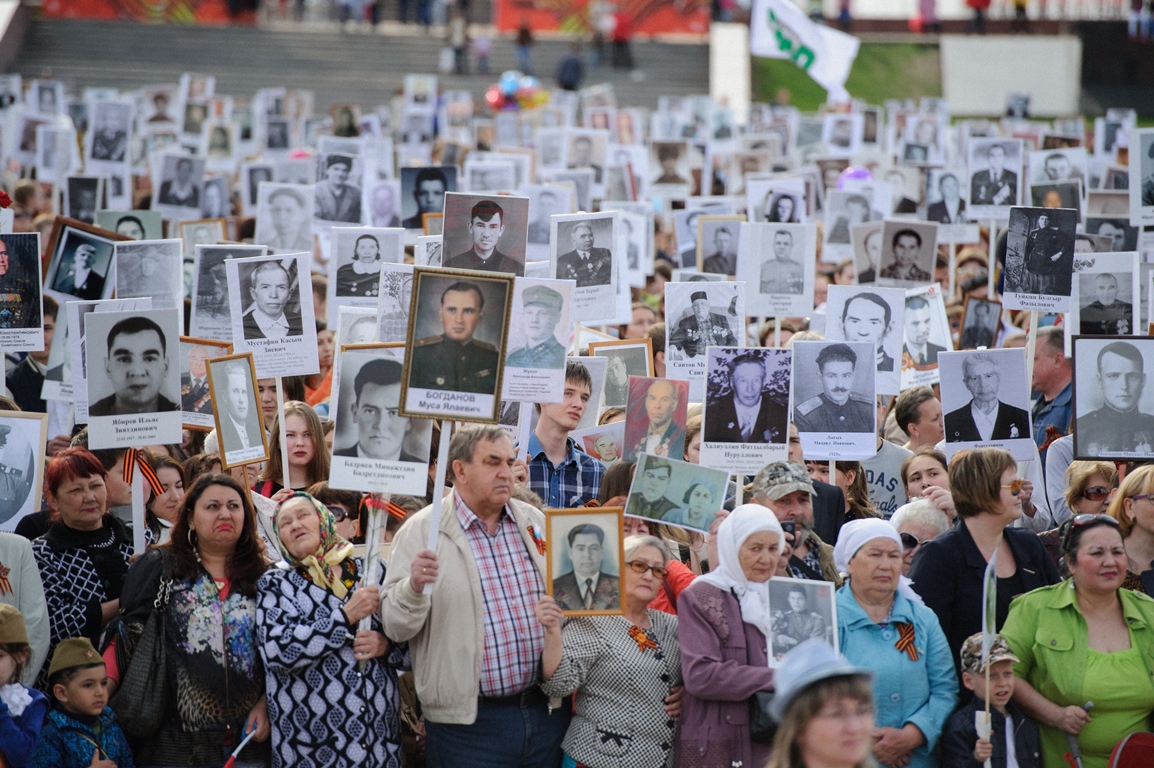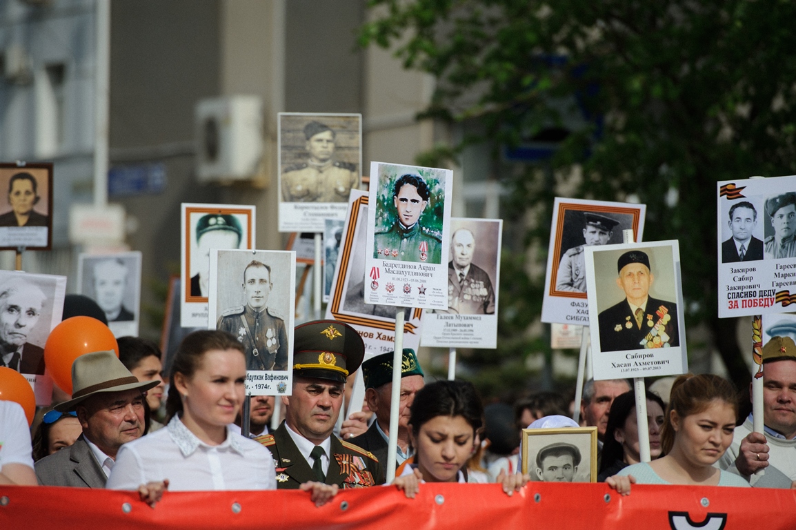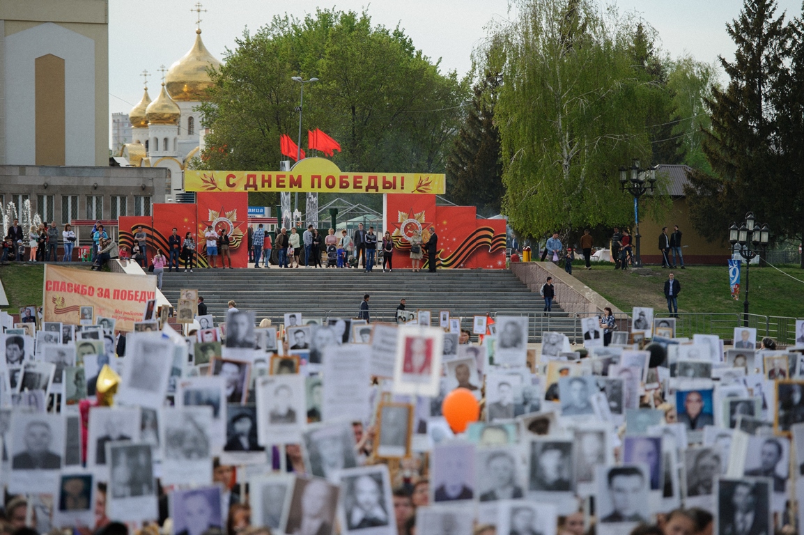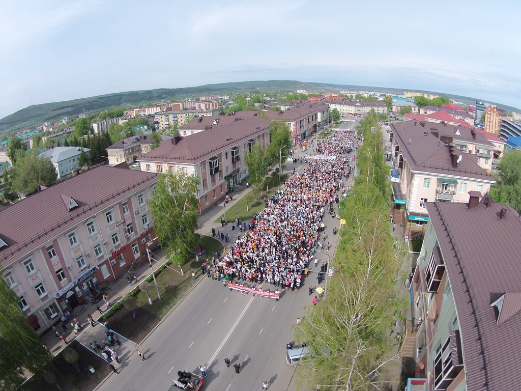pВ День Победы "Бессмертный полк" прошел торжественным маршем по улице Ленина от Молодежного центра до площади Нефтяников. Дети, внуки и правнуки фронтовиков вышли сегодня с портретами своих родственников. Во всероссийской акции, который проходит в Альметьевске второй год, приняли участие все, кто хотел поведать миру о родственниках, прошедших через войну./p pПятитысячное шествие возглавил глава района Айрат Хайруллин. Айрат Ринатович держал в руках портрет своего деда Рашита Хайруллина, который ушел на фронт и погиб в 1945 году при освобождении города Дрогобич. Депутат Государственной Думы РФ Ришат Абубакиров нес портрет своего отца Фазлытдина Тазетдиновича Абубакирова – ветерана войны./p pПод гимн «Бессмертного полка» колонна вошла на площадь Нефтяников. Далее состоялся показ видеоролика «Другое время». Звучала песня «А нам нужна одна Победа» из кинофильма «Белорусский вокзал». Участники акции присоединились к исполнению песни. После все участники исполнили «Песню о солдате» с трансляцией текста на экране./p pВажно отметить и то, что с каждым годом количество участников акции «Бессмертный полк» становится все больше. В этом году к общественной международной акции присоединились 40 стран. К маршу памяти присоединяется и весь мир – впервые он стартует в Лондоне, на Трафальгарской площади. /p pАльметьевск продолжает отмечать День Победы. После шествия колонны «Бессмертного полка» альметьевцам был предоставлен «открытый микрофон». Пользуясь возможностью, каждый желающий смог поздравить своего деда, бабушку, близких, родных и друзей с Днем Победы, прочитать стихи, спеть песни, посвященные Великой Победе. В 19.00 часов минутой молчания почтим память не вернувшихся с полей сражения. Далее жителям и гостям города будет представлена вечерняя программа с участием кавер-группы «Вегас». Завершатся праздничные мероприятие в 22.00 праздничным салютом./p pstrongРезеда Исмагилова, газета «Альметьевский вестник»/strong/p pstrongИспользованы фотографии/strong фотостудии "Колибри" и группы Аэрофотосъемка Альметьевск/p