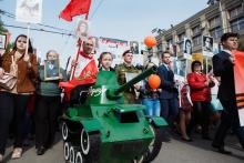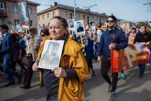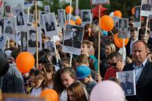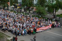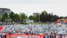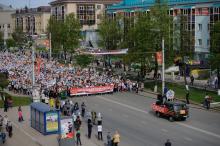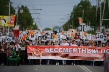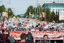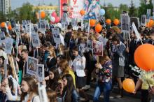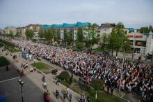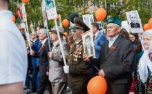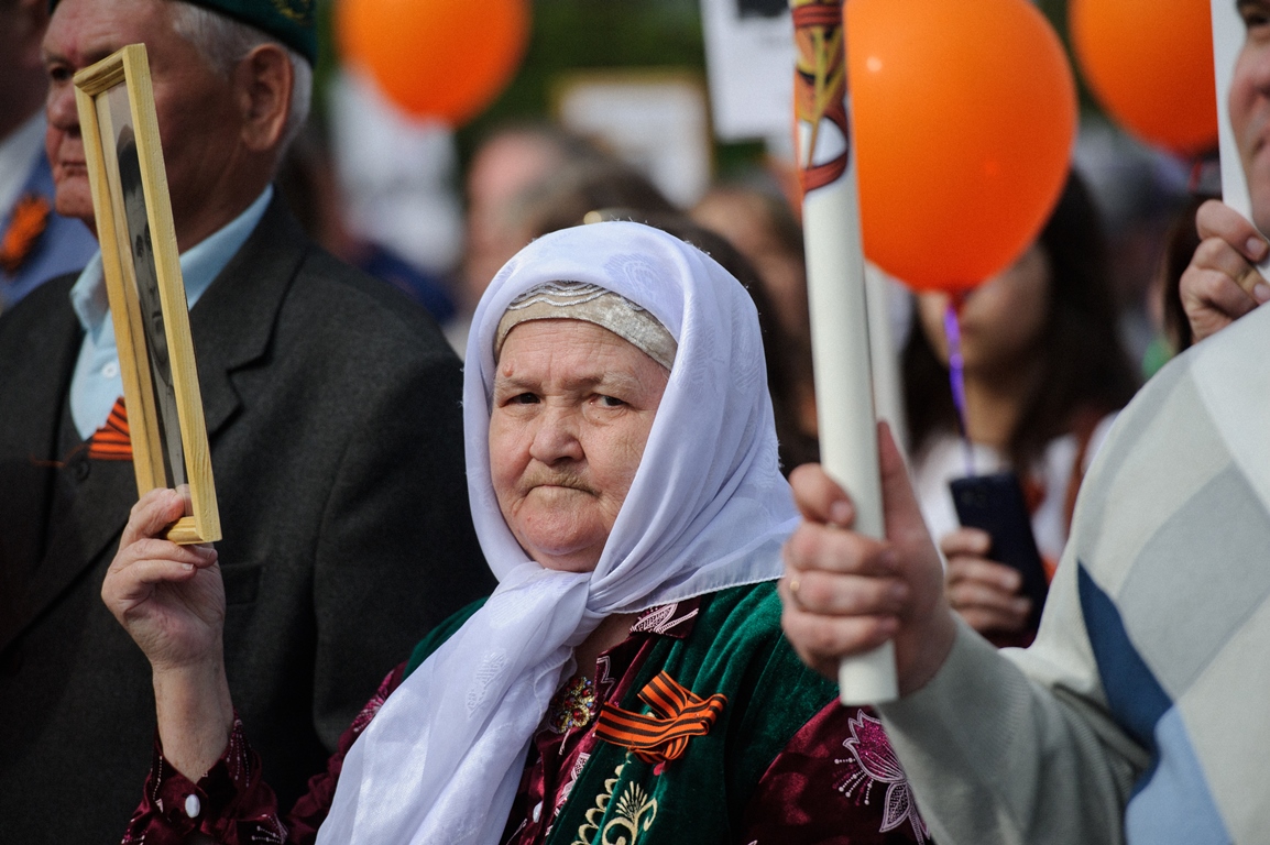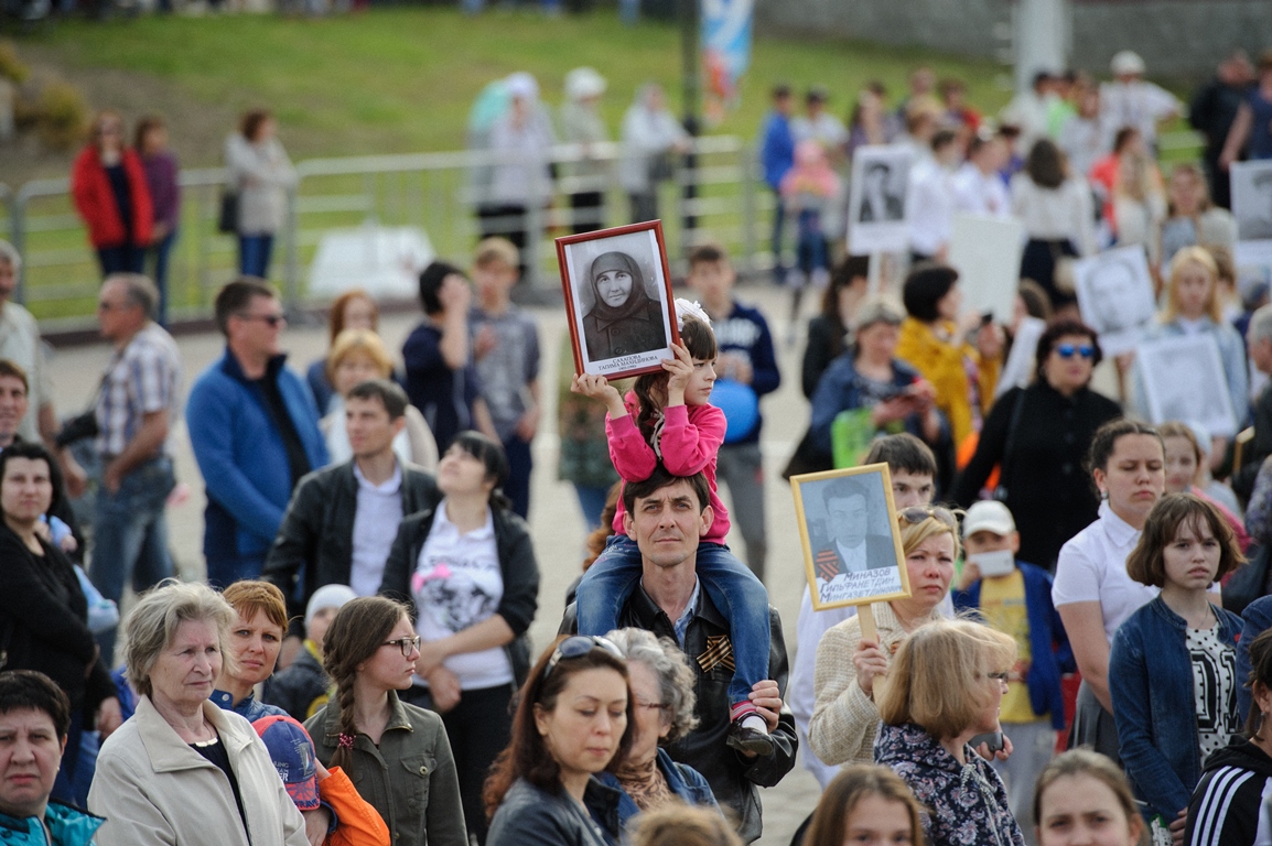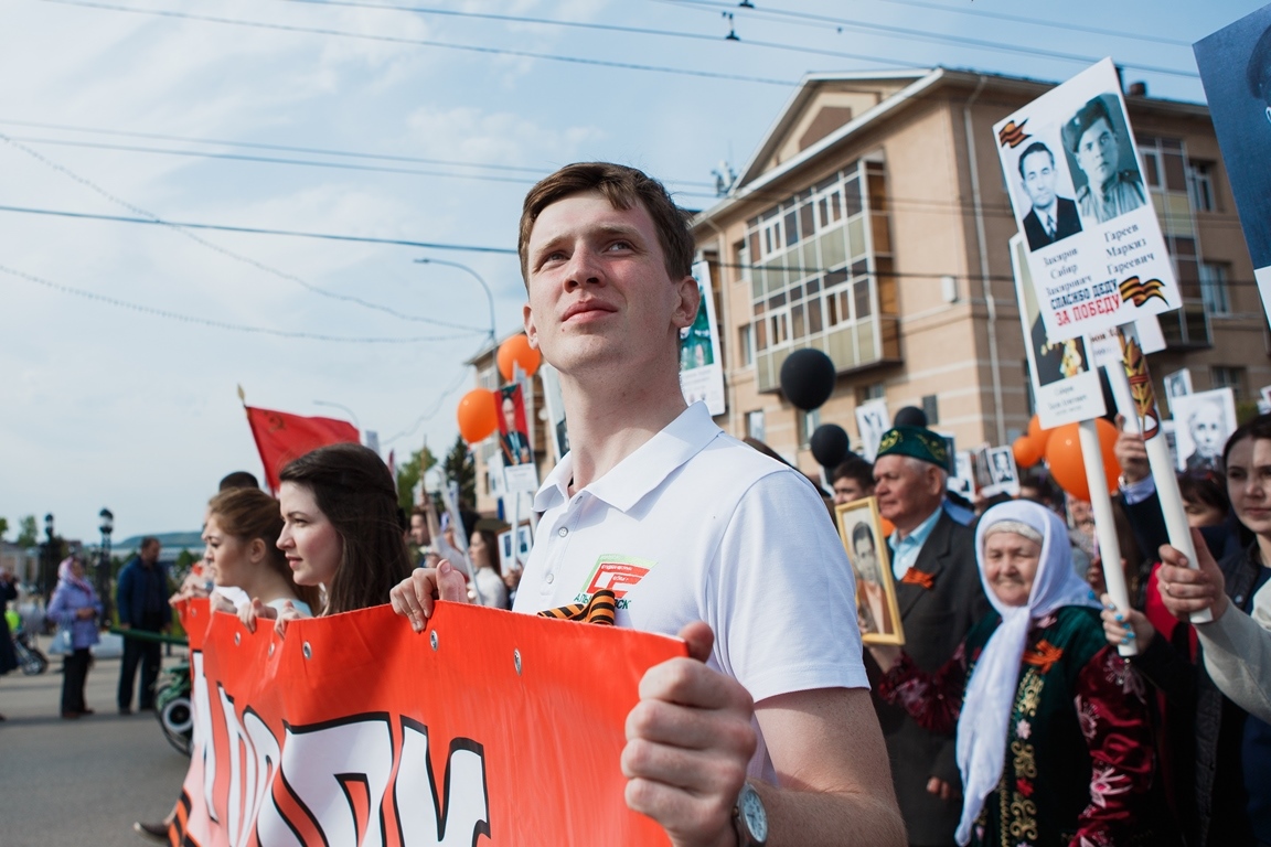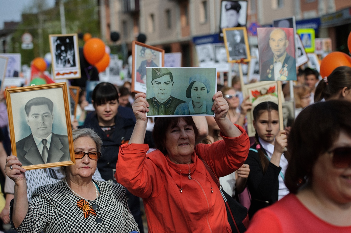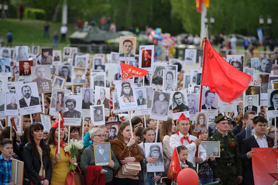 pВ День Победы "Бессмертный полк" прошел торжественным маршем по улице Ленина от Молодежного центра до площади Нефтяников. Дети, внуки и правнуки фронтовиков вышли сегодня с портретами своих родственников. Во всероссийской акции, который проходит в Альметьевске второй год, приняли участие все, кто хотел поведать миру о родственниках, прошедших через войну./p pПятитысячное шествие возглавил глава района Айрат Хайруллин. Айрат Ринатович держал в руках портрет своего деда Рашита Хайруллина, который ушел на фронт и погиб в 1945 году при освобождении города Дрогобич. Депутат Государственной Думы РФ Ришат Абубакиров нес портрет своего отца Фазлытдина Тазетдиновича Абубакирова – ветерана войны./p pПод гимн «Бессмертного полка» колонна вошла на площадь Нефтяников. Далее состоялся показ видеоролика «Другое время». Звучала песня «А нам нужна одна Победа» из кинофильма «Белорусский вокзал». Участники акции присоединились к исполнению песни. После все участники исполнили «Песню о солдате» с трансляцией текста на экране./p pВажно отметить и то, что с каждым годом количество участников акции «Бессмертный полк» становится все больше. В этом году к общественной международной акции присоединились 40 стран. К маршу памяти присоединяется и весь мир – впервые он стартует в Лондоне, на Трафальгарской площади. /p pАльметьевск продолжает отмечать День Победы. После шествия колонны «Бессмертного полка» альметьевцам был предоставлен «открытый микрофон». Пользуясь возможностью, каждый желающий смог поздравить своего деда, бабушку, близких, родных и друзей с Днем Победы, прочитать стихи, спеть песни, посвященные Великой Победе. В 19.00 часов минутой молчания почтим память не вернувшихся с полей сражения. Далее жителям и гостям города будет представлена вечерняя программа с участием кавер-группы «Вегас». Завершатся праздничные мероприятие в 22.00 праздничным салютом./p pstrongРезеда Исмагилова, газета «Альметьевский вестник»/strong/p pstrongИспользованы фотографии/strong фотостудии "Колибри" и группы Аэрофотосъемка Альметьевск/p