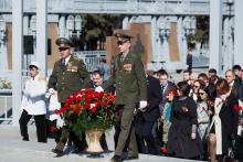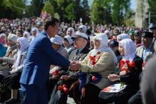 pВ Альметьевске праздничные мероприятия, посвященные 71-летней годовщине Победы советского народа в Великой Отечественной войне, начались ранним утром традиционным возложением венков к Вечному огню. Совет и исполком Альметьевского муниципального района под руководством главы района Айрата Хайруллина, депутаты Государственной Думы РФ Ринат Хайров и Ришат Абубакиров, руководство ПАО «Татнефть», руководители предприятий и общественных организаций района, а также школьники, студенты и жители города возложили цветы цветы к Мемориальному комплексу. Здесь, у Вечного огня, альметьевцы вспомнили всех героев той войны – солдат, партизан и подпольщиков, тружеников тыла. Важно вспомнить, что за период мобилизации с 1941 по 1945 год Альметьевским и Акташским районным комиссариатом было призвано в Вооружённые силы – 18 640 человек. Из них вернулись с фронта – 10 131 человек. Погибло и пропало без вести – 8 521 человек. Здесь, у Вечного огня, альметьевцы вспомнили всех героев той войны – солдат, партизан и подпольщиков, тружеников тыла. /p pДалее на площади Нефтяников начался торжественный парад, в котором приняли участие более 35 тысяч жителей города и района. Команду о его начале отдал военный комиссар Альметьевска Ришат Сабиров. После этого внимание участников парада и всех альметьевцев было приковано к огромному экрану, в реальном времени транслировавшему главный парад страны на Красной площади Москвы. Торжественный митинг, посвященный 71-й годовщине Победы, открыл глава района Айрат Хайруллин. Он поздравил присутствующих с 71-годовщиной Великой Победы и подчеркнул, что подрастающее поколение должно быть достойно подвигов отцов, дедов и прадедов. Также он отметил неоценимый вклад в победу тружеников тыла и детей войны. «Вклад всех альметьевцев в Великую Победу послужил толчком для послевоенного развития района. Нефть, которая стала добываться в Альметьевске, помогала поднять из руин и Советский Союз, восстановить разрушенное народное хозяйство. Мы, молодое поколение, всегда должны помнить их великий подвиг, беречь Родину и ее славную историю!» - сказал Айрат Ринатович и выразил слова благодарности руководству республики, компании «Татнефть», коллективам промышленных предприятий, всем работникам организаций и учреждений города и района за вклад в подготовку праздника. /p pЗаместитель Премьер-министра РТ-министр сельского хозяйства и продовольствия республики Марат Ахметов искренне поздравил альметьевских ветеранов с Днем Победы и зачитал поздравление от имени Президента РТ. /p pВ своем выступлении депутат Государственной Думы РФ Ринат Хайров отметил, что участники войны и труженики тыла, дети войны доказали всему миру, что любовь к своему Отечеству — сильнее жестокого врага и что в суровое военное время народ достигает свободы через единство, жертвенное преодоление всех испытаний. «Низкий поклон всем вам, дорогие наши ветераны. Спасибо вам за Победу и наше мирное небо. С праздником!» – выразил Ринат Шамильевич свои искренние пожелания. /p pДалее Ришат Сабиров зачитал праздничный приказ министра обороны Российской Федерации, после чего торжественным маршем по площади прошли участники парада. Первым по традиции его открыла знаменная группа, которая несла флаги Российской Федерации, Республики Татарстан и знамя Победы. Следом выне