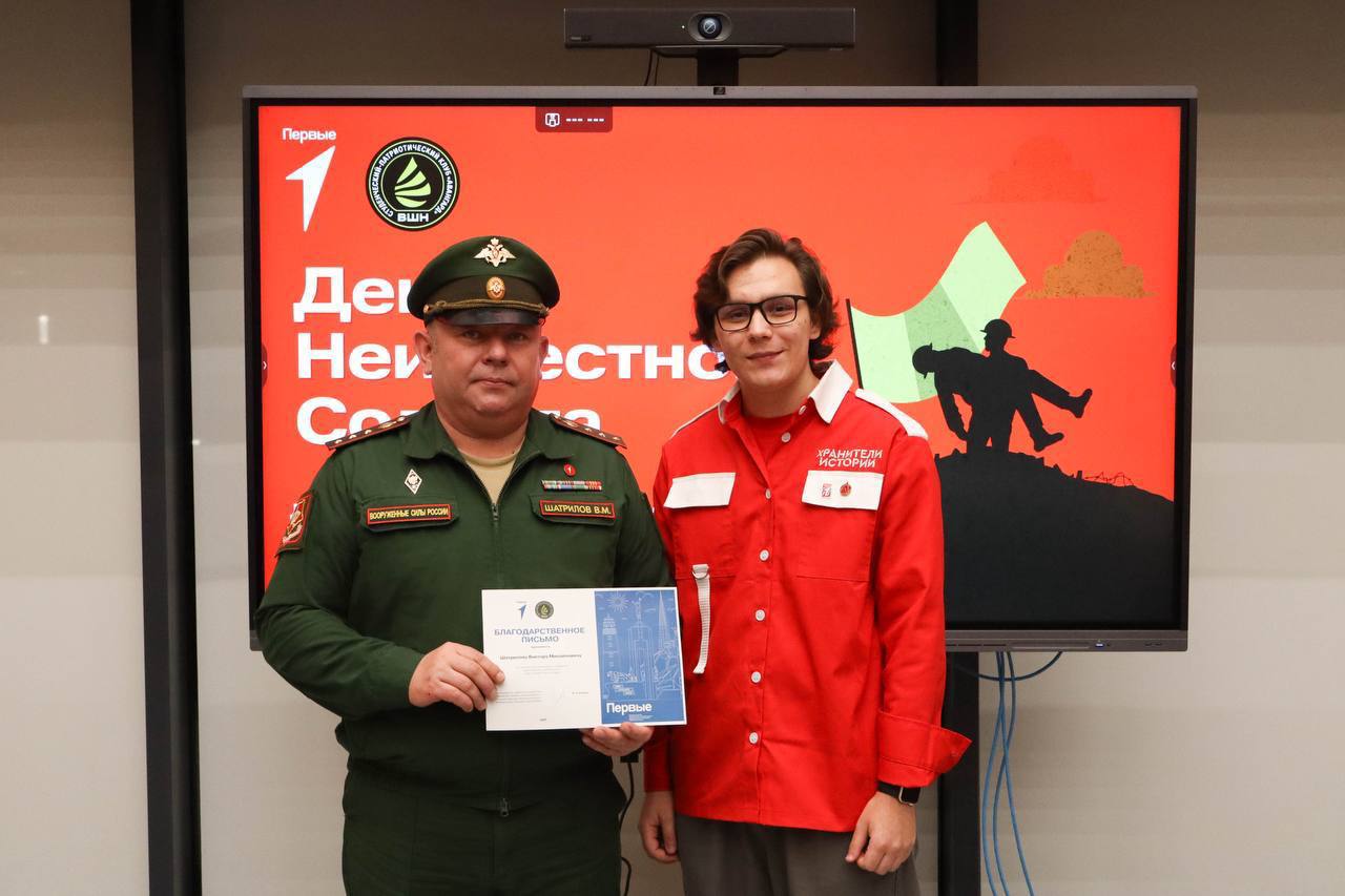 В этот день Виктор Шатрилов рассказал о работе поискового движения, а председатель первичного отделения — Илья Куклин — представил уникальный проект Первых «Хранители Истории». Завершилось мероприятие патриотическим квизом и написанием трогательных писем бойцам, находящимся сейчас на защите Отечества