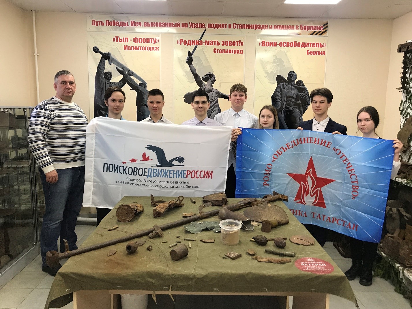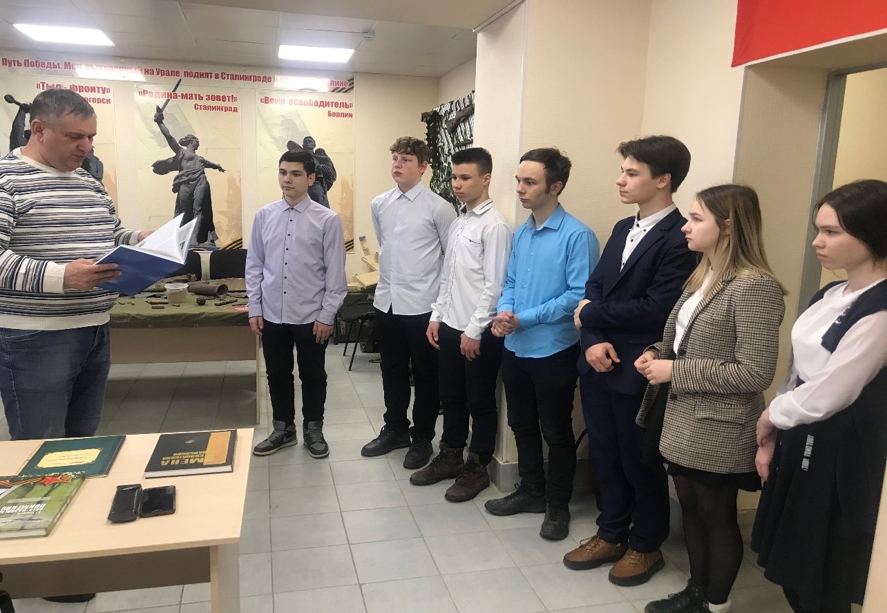 p13 апреля отряд юнармейцев МАОУ «СОШ №16» «Патриот» посетил военный музей поискового отряда «Ветеран», расположенного в подростковом клубе «Ровесник». Руководитель поискового отряда «Ветеран» - Еланский Евгений Геннадьевич провел увлекательнейшую экскурсию по музею для учащихся нашей школы./p pЕвгений Геннадьевич рассказал, что Альметьевские поисковики подняли с мест сражения свыше 100 солдат ВОВ и только один из них был опознан./p pТакже поисковиками отряда «Ветеран» был найден закрылок немецкого самолета, который привезли в Альметьевск для передачи в музей./p pОтряд юнармейцев нашей школы остался очень довольным посещением музея!/p