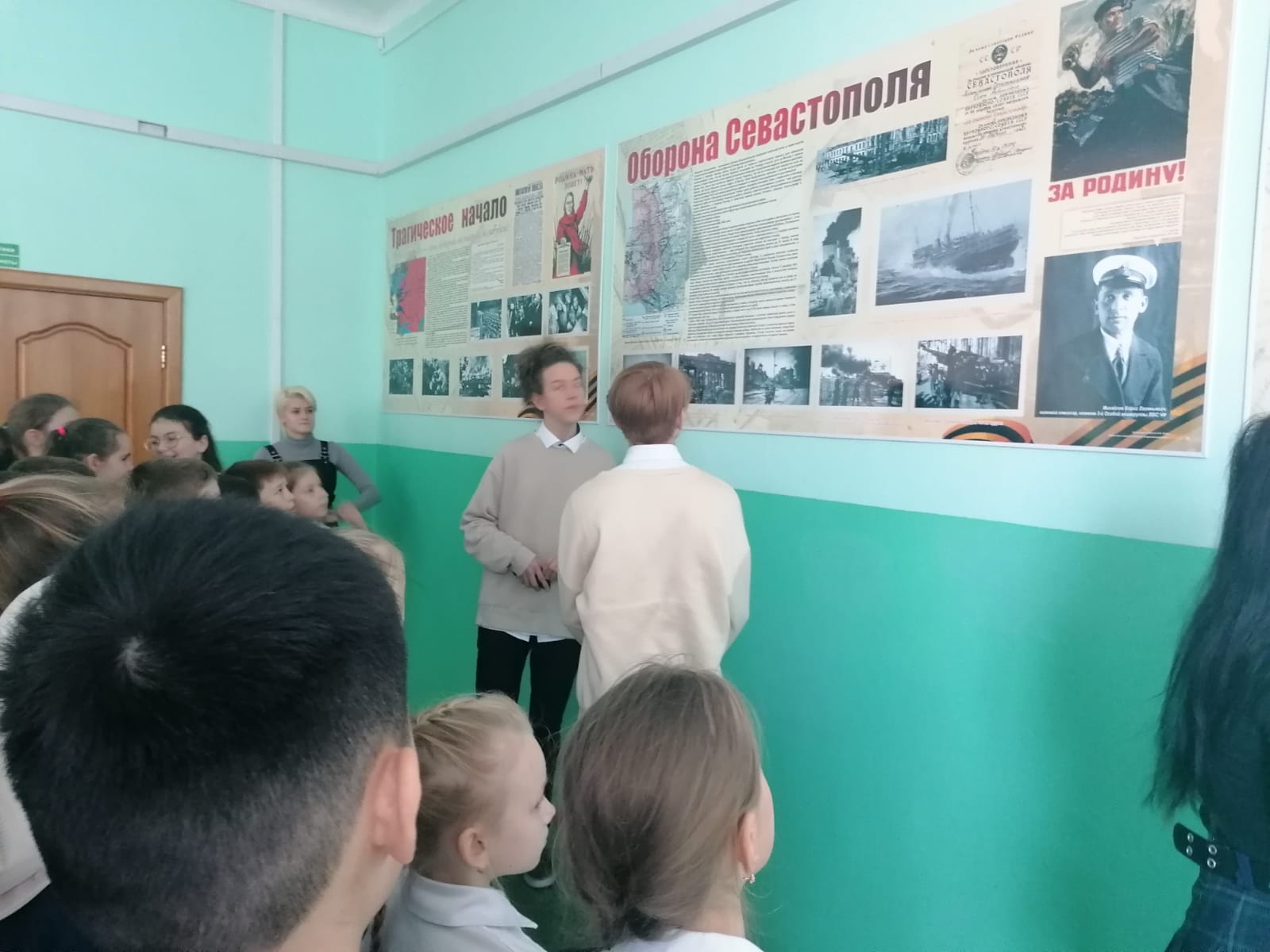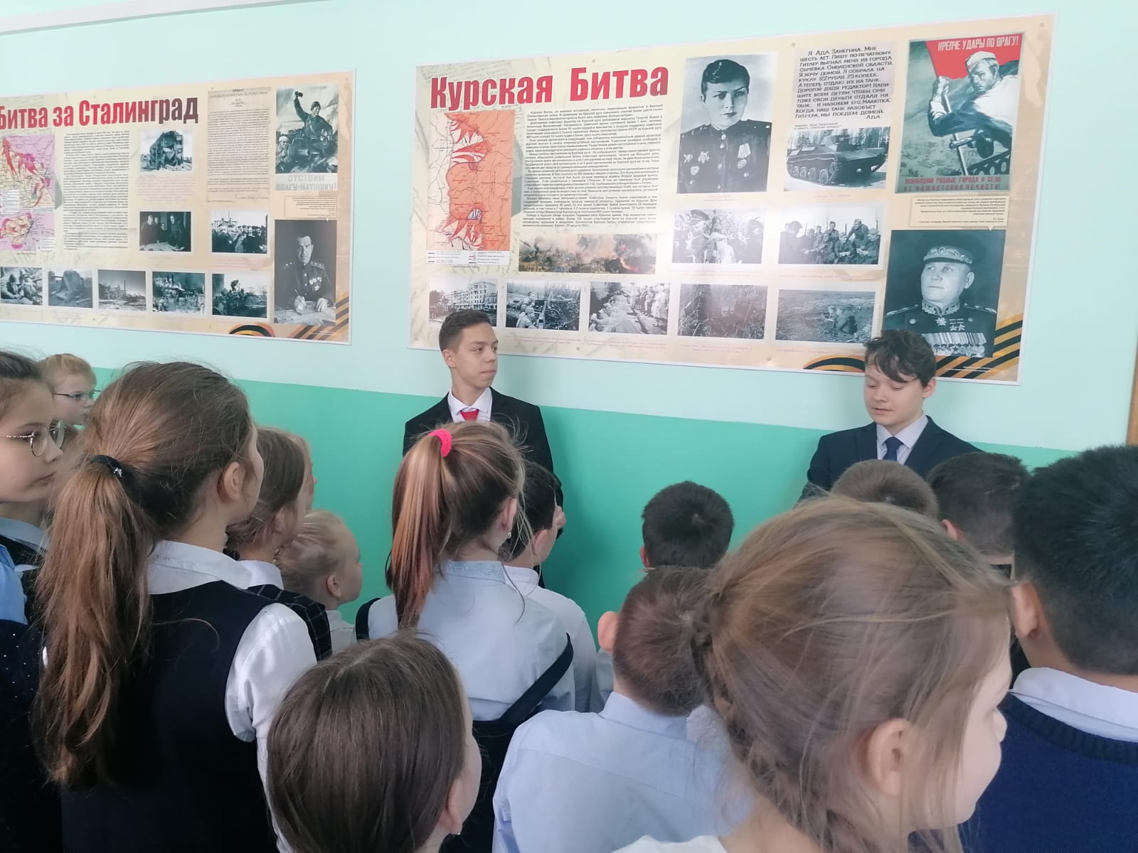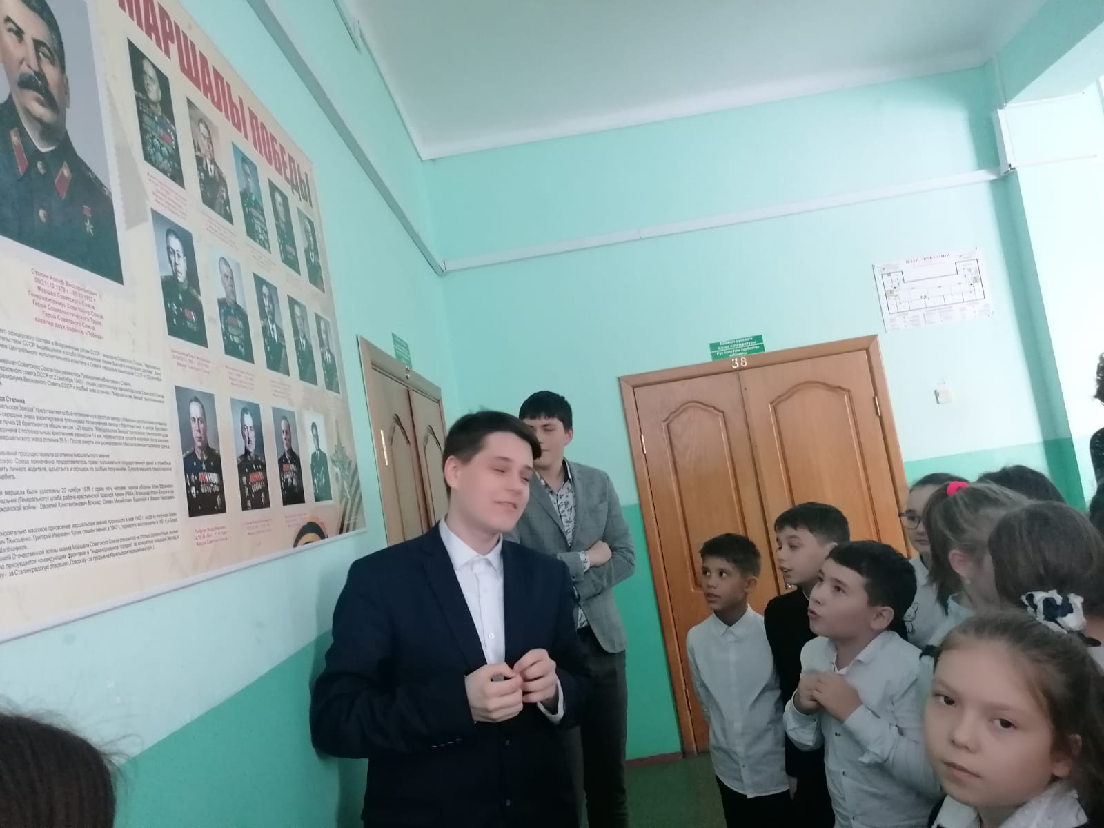 В нашей школе №12 г. Альметьевск, есть галерея боевой славы, посвященная Великой Отечественной войне 1941-1945гг. Стало традицией, что ученики 10-11 классов проводят Виртуальную экскурсию по этой галерее для учеников младших классов. Ребята погружают детей в атмосферу военного времени, расширяют знания школьников о событиях 1941-1945 гг., пробуждают интерес к изучению исторического прошлого нашей Родины.