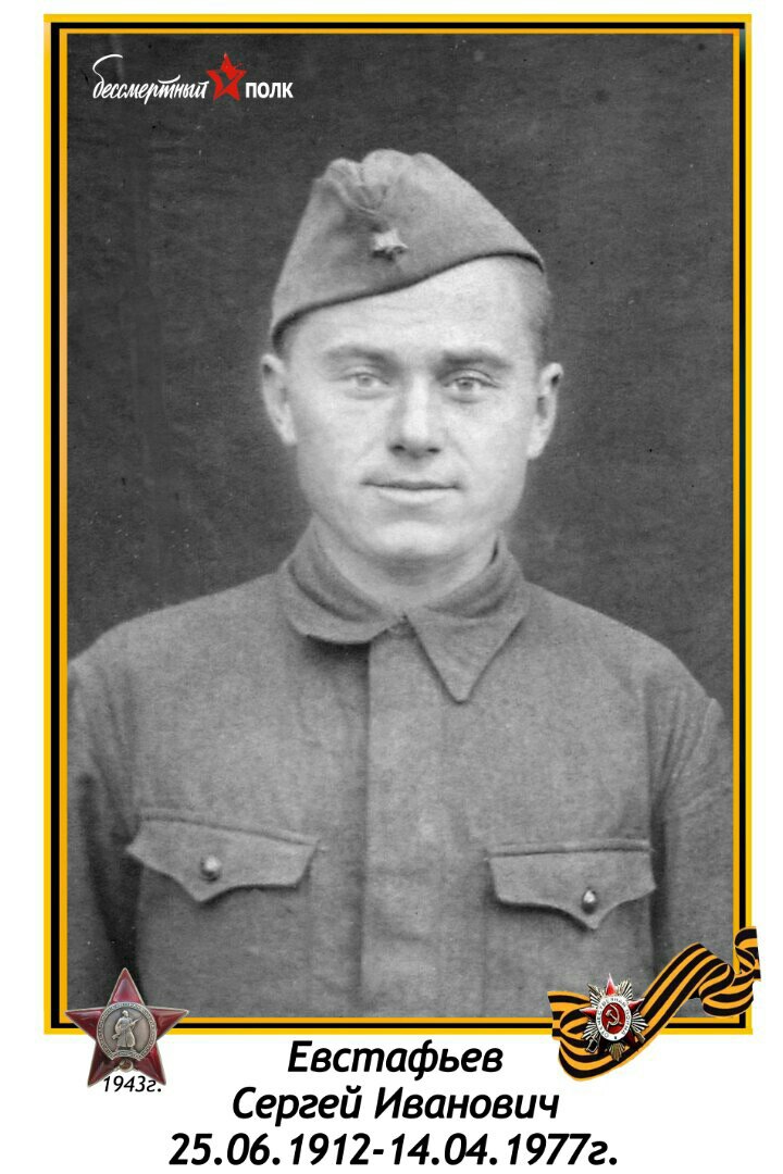 Евстафьев Сергей Иванович. Родился 25 июня 1912 года в д. Старая Михайловка Альметьевского района ТАССР, в крестьянской семье. 29 июня 1941 года был призван Альметьевским Районным Ваенным Коммисариатом в ряды Советской Красной Армии. Гвардии сержант Евстафьев Сергей Иванович - командир пулеметного расчета 252 -го гвардейског стрелкового полка 83-й гвардейскй стрелковой девизии. Награжден Орденом Красной Звезды.