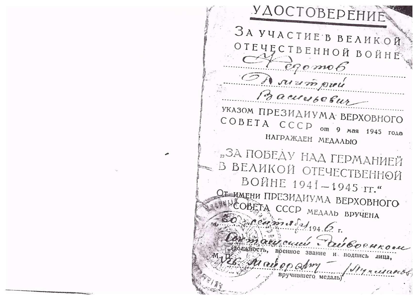 После госпиталя вернулся в свою часть. День Победы встретил в Берлине. Вернулся с войны в конце 1945 года. Умер в родном селе 02.01.2009 г.