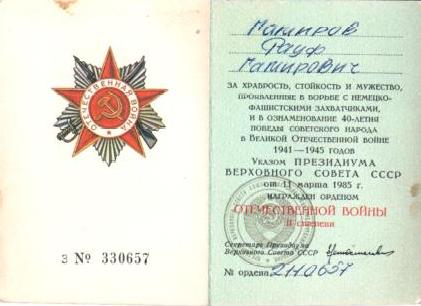 На работниках музея истории села Елхово им. Х.Ахметшина лежит огромная ответственность перед жителями их малой Родины и района в целом, в особенности, перед будущими поколениями. Ведь музей - это центр сбора информации об участниках ВОВ, тружениках, погибших и вдовах. Статистика такова, что с каждым годом все меньше остается живых свидетелей тех страшных лет. Что-то уже забывается, какие-то документы и материалы оказываются утеряны. И в связи с этим, сотрудники музея обязаны восстановить все имена и увековечить их память для потомков. В музее Елхово собраны списки этих солдат, ведется тщательная проверка имен. Из села ушло на фронт 530 человек, а вернулось 303 человека. Гамиров Рауф Гамирович один из тех, кому посчастливилось вернуться. Рауф Гамиров родился 13 февраля 1915 года в селе Нижнее Абдулово Первомайского района Татарской АССР. Образование - 5 классов. До призыва в ряды Советской армии работал в колхозе плотником. На военную службу призвали в 1940 году. Однако, срок службы завершить не успел, началась война и в мае 1942 года он был отправлен на Южный фронт. В качестве старшего сержанта артиллерийского полка участвовал в Сталинградской битве, где был серьёзно ранен и контужен. После лечения в госпитале его отправили в тыл. И Рауф Гамирович вместе со стариками и детьми начал поднимать колхоз. Работали день и ночь. Всё приходилось делать. И пахать на быках, и строить колхозные конюшни, косить, жать серпами. Зимой возили хлеб на быках в районный центр Черемшан, чтобы отправить на фронт. После войны работал электромонтером в колхозе «Путь к коммунизму» до 1980 года. За добросовестный труд неоднократно награждался почетными грамотами. Избирался депутатом районного и сельского совета.