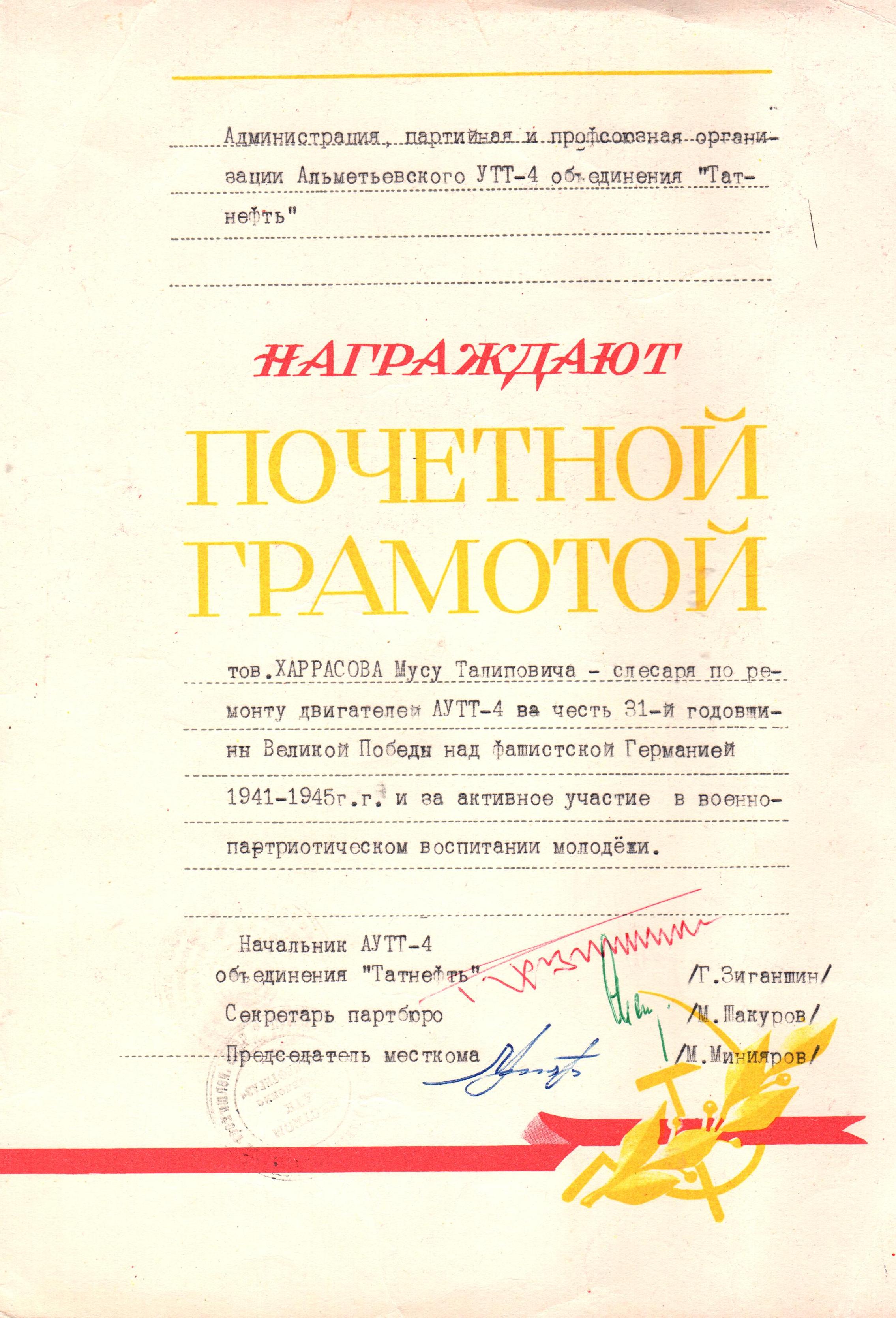 Муса Талипович мобилизован в 1941 году. В звании ефрейтора участвовал в освобождении многих городов, а также города Москвы. Воевал во II-ом Украинском фронте 13-го Отдельного танкоремонтного Краснознаменного батальона при 6-ой Гвардейской Танковой Армии. Демобилизован в 1945 году. После войны работал трактористом в колхозе «Эльком». Позже, трудовую деятельность продолжает в «Альметьевнефть» АУТТ – 4 слесарем, мотористом. С женой Миннебикой вырастили семерых детей. Ушёл из жизни 1990 году, похоронен в поселке Нижняя Мактама.