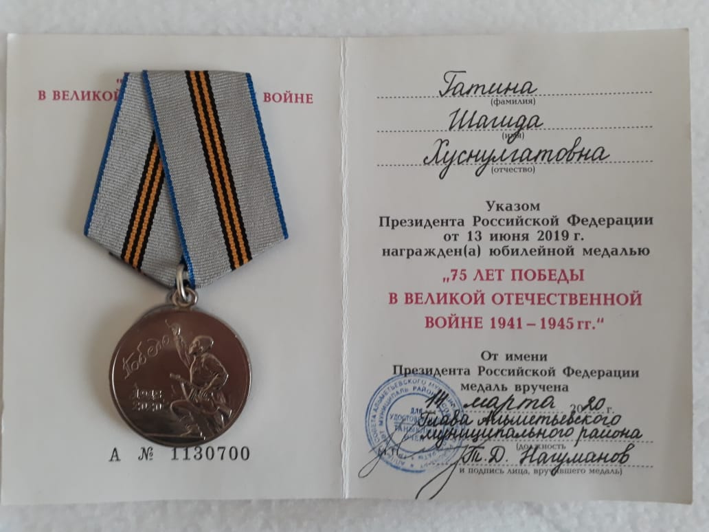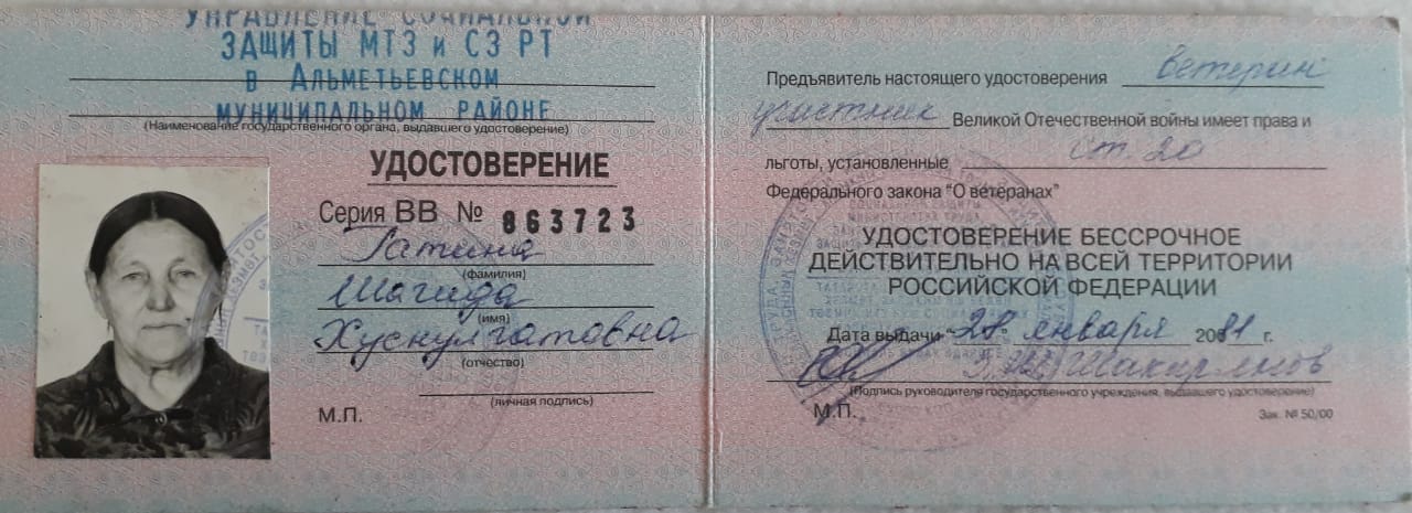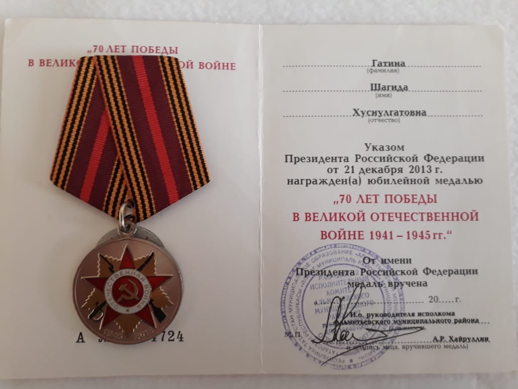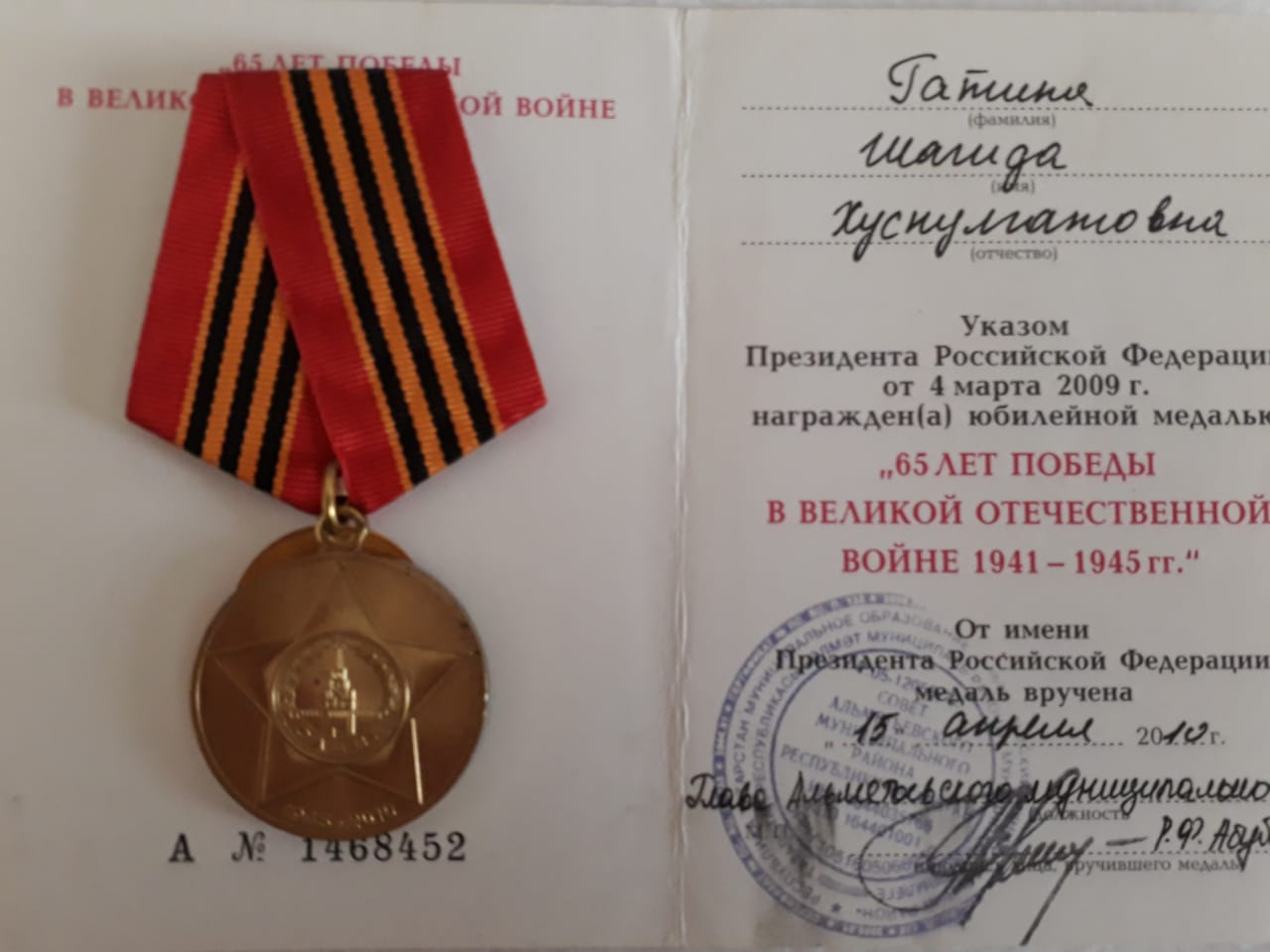 pНа многое способно сердце женщины— любить, заботиться, оберегать, быть хранительницей очага. Однако на что ей следует полагаться, как не на свою храбрость, чтобы преодолеть ужасного и жестокого врага? /p pХрабрая сердцем…Именно так хочется назвать Гатину Шахиду Хуснулгатиновну, которая отличилась особым мужеством и отвагой в годы Великой Отечественной войны. Она была ещё совсем юной, когда на страну обрушилась война, страшным и кровавым громом. /p p«Одно дело сидеть и горевать, ждать помощи, а другое самим взяться за дело и встать на поддержку страны!» — гордо заявила юная девушка своим подругам. Их было семеро. Семеро девушек, решивших внести свою долю лепты на пути защиты Отчизны! Нет, они не держали в руках винтовку и не проливали кровь, перед ними стояла задача — собрать раненых и погибших солдат с поля боя, копать траншеи и окопы, участвовать в восстановлении железных дорог, а также освобождении городов от обломков. Девушки гордо шли вперёд , брались за любое дело, ведь они всем сердцем желали Победы! /p pПосле окончания войны и долгожданной Победы , казалось бы, подруги разбегутся по разным городам, выйдут замуж, обретут счастье и покой. Однако они решаются довести начатое дело до конца, и посвятить ещё один год на то, чтобы оказать помощь в восстановлении городов. Кто-то скажет, что именно такие люди — гордость для Отчизны, а кто-то скажет, что ведром воды пожар не потушить. Однако они не просто семеро девушек, что брались за любое дело, они были юными и смелыми девушками, глядя на старания которых сердца солдат наполнялись надеждой и верой в то, что вся страна желает и ждёт Победы, верит и поддерживает их./p pА как же любовь спросите вы? Свою любовь отважная и бойкая девушка встретила в 1946 году, в возрасте 23 лет, когда вернулась в родное село Нижнее Абдулово. Ведь именно здесь отважный солдат, кавалер ордена Ленина, Гатин Махмут Гарифович, замечает хрупкую и нежную, но невероятно храбрую сердцем девушку. С ним они создают крепкую и дружную семью. У них друг за другом рождаются шестеро детей, которые со временем становятся достойными гражданами своей страны. /p pАвтор: Газизова М.М. /p p /p