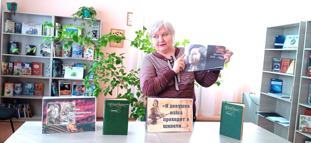 p7 мая в Лесно-Калейкинской сельской библиотеке состоялась литературный час «И девушка наша в походной шинели», посвящено 100 летию со дня рождения известной советской поэтессы Юлии Владимировны Друниной. Рассказали о яркой, насыщенной, трагической жизни поэтессы, участницы Великой Отечественной войны. Всю войну прошла санитаркой. На страницах ее произведений вновь и вновь оживали, обретали вторую жизнь ее пожертвовавшие собой ради свободы Родины. Была представлена книжная выставка «В солдатской шинели», включающей авторские сборники поэтессы «Память сердца», «За минуту до боя» и т.д.br / Зав. библиотекой Хайрутдинова Ильмира Ринатовна/p