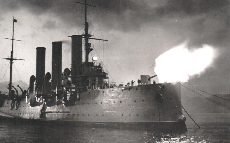 p4 июня 1897 года на верфи "Новое Адмиралтейство" в Петербурге было начато строительство крейсера "Аврора". /p p /p pВо время Великой Отечественной войны в тяжёлые годы ленинградской блокады "Аврора" стоял у стены в порту Ораниенбаума и подвергался немецким обстрелам и бомбардировкам. /p p /p pКурсантов отправили на другие корабли, а сам крейсер был включён в систему ПВО Ленинграда и Кронштадта. Сначала в команде корабля было 260 человек, но потом краснофлотцы ушли на фронт, а с крейсера сняли часть вооружения. В июле 1941 года была сформирована батарея «А» («Аврора»). На ней было девять 130-миллиметровых орудий с крейсера, и обслуживали их матросы из экипажа. 10 сентября 1941 года батарея приняла неравный бой с противником. Моряки сражались до последнего снаряда. Когда закончились боеприпасы, они вывели из строя орудия и продолжали сражаться. Из 165 человек личного состава к своим вышли только 26./p p /p p /p pСост.: Мемориальный музей им.Фатиха Карими/p