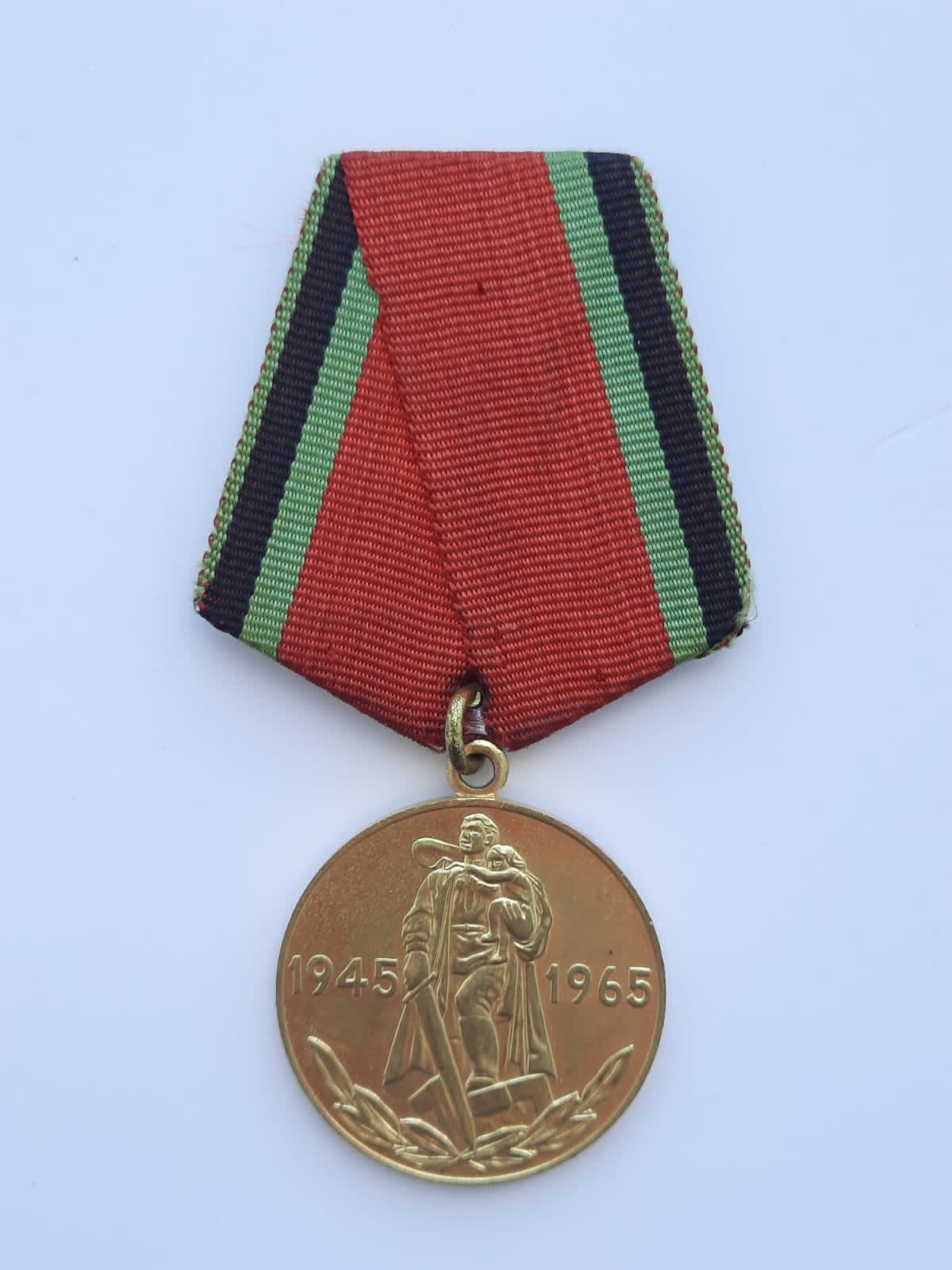 pМедаль учреждена Указом Президиума Верховного Совета СССР от 7 мая 1965 года в ознаменование 20-летия победы над фашистской Германией в Великой Отечественной войне 1941–1945 гг. Время создания 1965 год. Размер 3,2x3,2 см. Юбилейная медаль «Двадцать лет Победы в Великой Отечественной войне 1941–1945 гг.» носится на левой стороне груди и при наличии орденов и других медалей СССР располагается после медали «За победу над Германией в Великой Отечественной войне 1941–1945 гг.». Медаль «Двадцать лет Победы в Великой Отечественной войне 1941–1945 гг.» круглая, размером 32 мм в диаметре, изготовляется из латуни.На лицевой стороне медали изображение памятника советскому воину-освободителю (установлен в берлинском Трептов-парке, скульптор Вучетич Е.В.) на двух скрещенных лавро-дубовых ветвях и надпись «1945-1965». На оборотной стороне медали надписи: по окружности «Двадцать лет Победы в Великой Отечественной войне 1941–1945 гг.», в середине медали римская цифра «ХХ» и звёздочка на фоне расходящихся лучей. Края медали окаймлены бортиком. Изображения и надписи на медали выпуклые. Медаль при помощи ушка и кольца соединяется с пятиугольной колодочкой, обтянутой шёлковой муаровой лентой шириной 24 мм. На ленте три продольные чередующиеся полоски — красного, зелёного и чёрного цветов. Край ленты после чёрной полосы окантован узенькой зелёной полоской. Авторами рисунка медали были художники Ермаков Виктор Александрович (аверс) и Лукьянов Юрий Александрович (реверс). Юбилейная медаль «Двадцать лет Победы в Великой Отечественной войне 1941–1945 гг.» стала первой из серии медалей, учреждаемых в канун юбилея дня Победы. В дальнейшем подобные юбилейные медали учреждались через каждые десять лет. Правда, на 25-летний юбилей Победы также был учреждён особый нагрудный знак, вручавшийся всем ветеранам, однако статуса медали он не имел. Несмотря на тот факт, что статут медали предусматривал однократное вручение, известны случаи повторного награждения. Так, например, двух медалей «Двадцать лет Победы в Великой Отечественной войне 1941–1945 гг.» удостоен Цуранов Николай Иванович. Удостоверения к медали выписаны 12 сентября 1966 года и 23 января 1967 года Ангарским городским военным комиссариатом. Подобные казусы случались чаще всего из-за ошибки в списках, представленных к награде, когда один и тот же человек был указан в списках дважды. По состоянию на 1 января 1995 года юбилейной медалью «Двадцать лет Победы в Великой Отечественной войне 1941–1945 гг.» награждено приблизительно 16.399.550 человек. Медаль принадлежала Даутовой Мухлисе Абдулхаковне./p p /p p /p p /p pМемориальный музей им.Фатиха Карими/p