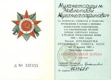 Родился 1923 года в деревне Нижняя Мактама. Мобилизован в сентябре 1942 года, попал в запасной полк Сурукской станции. 25 сентября ушли на фронт. В г. Калинине I – танковой армии 10 мото- механической бригаде проводились военные учения. В конце октября Асташкой станции Смоленской области начали воевать. Освободили несколько деревень, а при освобождении деревни Меркуши был тяжело ранен. 6 месяцев пролежал в госпитале станции Асташко. В июне 1943 года после госпиталя полк отправляют в направление г.Курска. Воевали на Курск- Орловской дуге. Когда немцы отступали в районе Грайбри, после контрразведки попал № 180 полк 27 армию пулеметную роту. В марте 1944 года уничтожили Корсун –Шевченскую группировку. Когда дали звание сержанта в штабе 27 армии, назначили командиром отделения роты пулеметчиков. Освободили с этой ротой Бессарабию, а контрнаступательных боях в Румынии был ранен. 15 дней пролежал в госпитале. После госпитали участвовал в освобождении Венгрии, Чехословакии, Австрии. День Победы встретил в г.Градц Австрии.