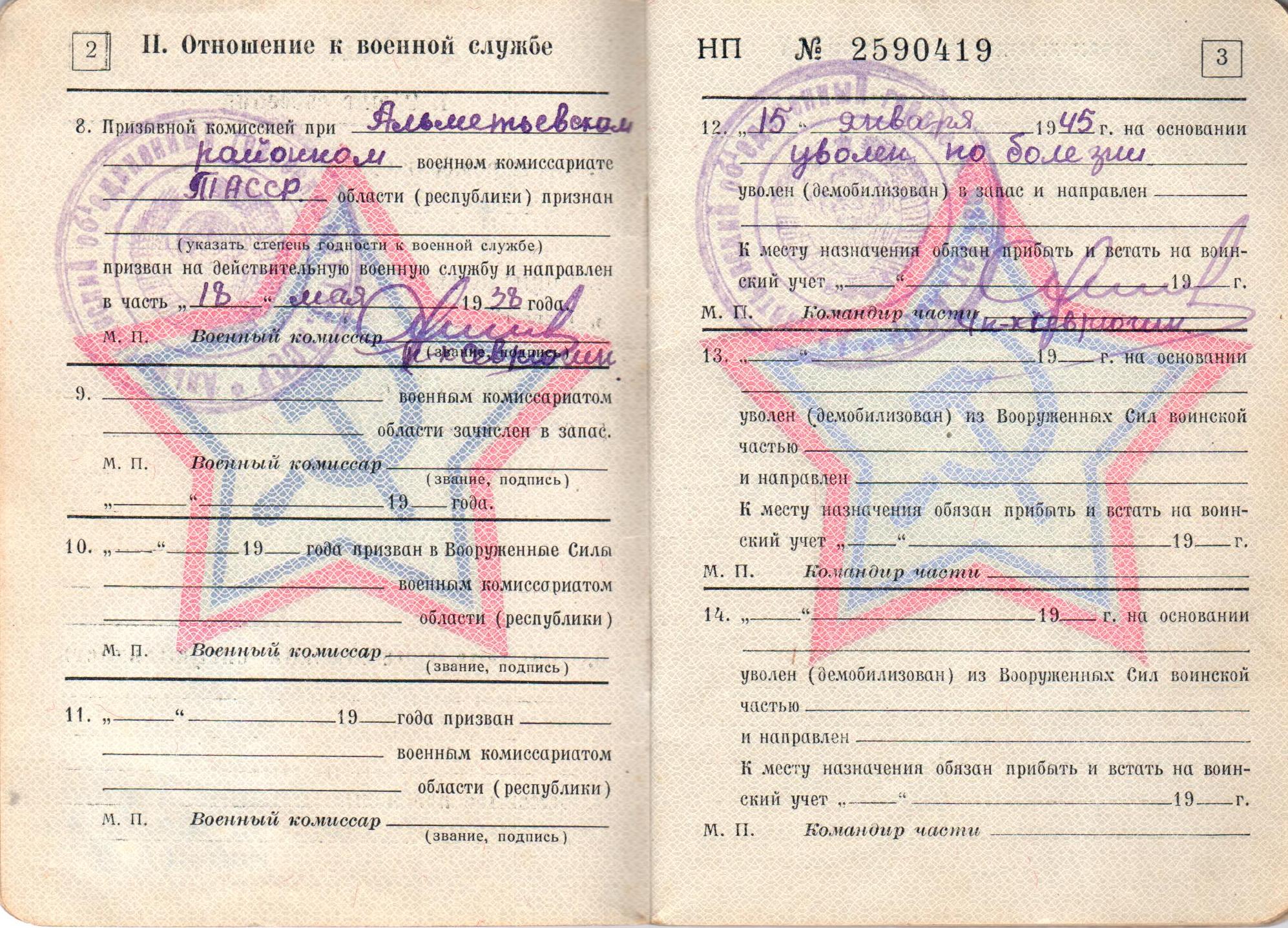 Мобилизован 1941 году. Служил стрелком 44 артилл. полку и 97 стрел.полку. В 1944 году был тяжело ранен в голову, пролежал в госпитали. Демобилизован по болезни 15 января 1945 года.