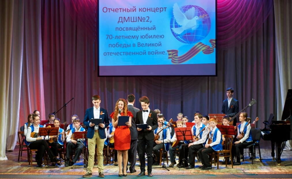 p class="rtejustify"span style="font-size:14px" 13 апреля 2015 года в Драмтеатре состоялся Отчетный концерт Детской музыкальной школы №2, посвященный 70-летию победы в Великой Отечественной войне. В концерте приняли участие преподаватели и учащиеся школы. Были приглашены ветераны и работники тыла. В программе концерта прозвучали произведения русских, зарубежных, татарских композиторов, посвященные войне. Зрители почтили память павших минутой молчания. Концерт получил положительные отзывы зрителей и приглашенных гостей./span/p