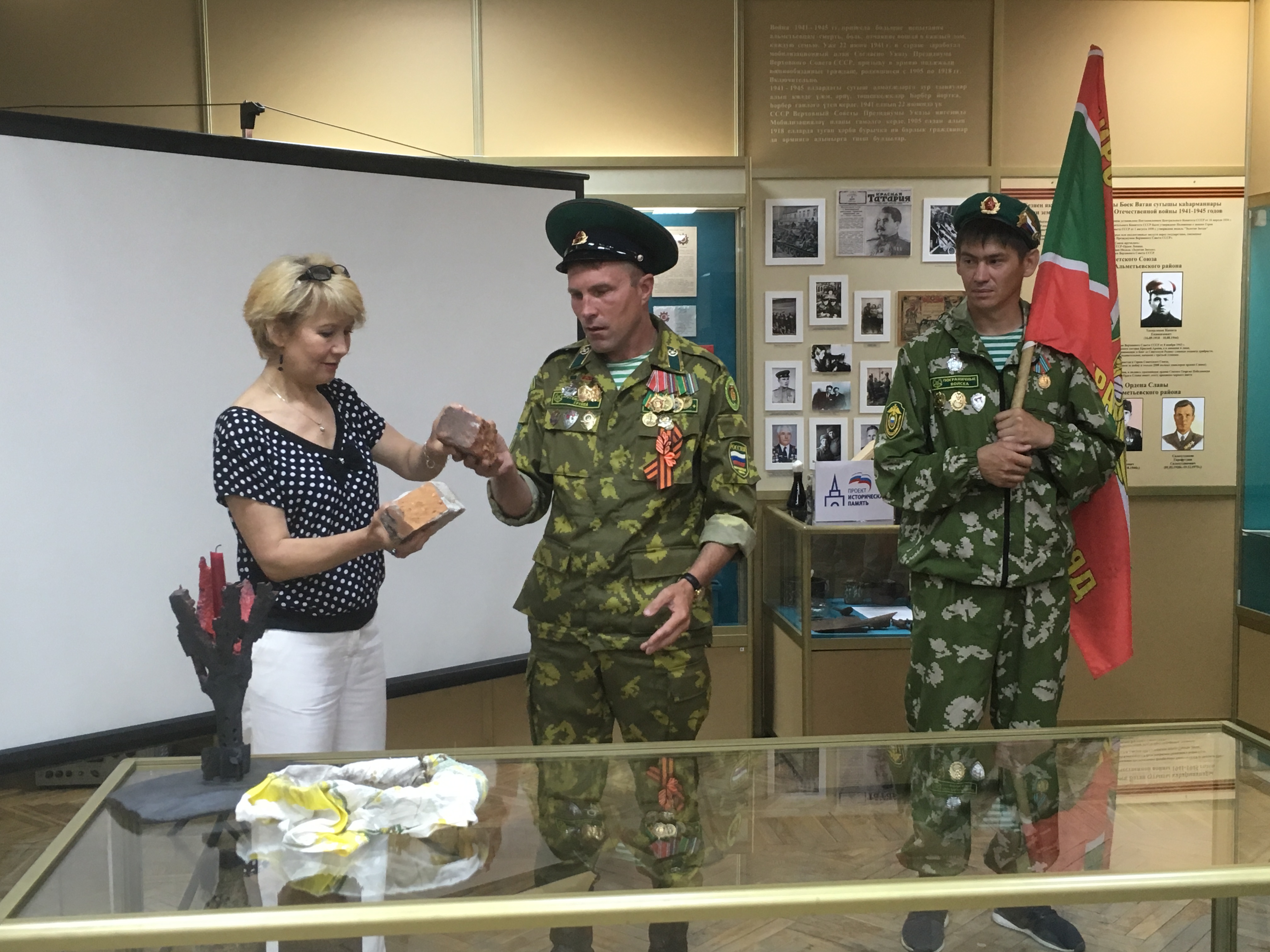 p25 июня в Альметьевском краеведческом музее встречали ветеранов - пограничников, вернувшихся со священной земли города–Героя Бреста. Автопробег, посвящённый 100-летию пограничных войск, стартовал 18 июня так же от нашего музея. Ветераны-пограничники г. Альметьевск через города и веси нашей Родины провезли знамя Пограничных войск России. К автопробегу, инициированному пограничниками г. Альметьевск, присоединились пограничники Чувашии, Кирова, Нижнего Новгорода, Екатеринбурга. 22 июня – участники автопробега присутствовали на мероприятиях, посвящённых началу Великой Отечественной войны 1941 – 1945 г.г./p p Под аплодисменты присутствующих на мероприятии представителей поисковых отрядов Альметьевска, ФОРПОСТа, ветеранов пограничной службы и под звуки легендарного марша «Прощание Славянки», как героев, встретили участников автопробега. Председатель общественной организации ветеранов боевых действий пограничной службы и пограничников запаса в Республики Татарстан по г. Альметьевск и Альметьевскому району Евлеев Сергей Евгеньевич передал в музей знамя Пограничных войск России, землю с многострадальной и героической Брестской земли и кирпич из стены Брестской крепости. Перед ветеранами- пограничниками со словами приветствия и благодарности выступили: главный научный сотрудник Альметьевского краеведческого музея Э.М. Гараева и депутат Новотроицкого сельского поселения А.В. Лапко./p p Музей это особенное место здесь не только хранится история, но и формируется будущее. Сегодняшнее мероприятие уже вошло в историю нашего города. Предметы, переданные музею, займут достойное место в экспозиции. На экскурсиях и музейных мероприятиях мы будем рассказывать и об этом автопробеге нашим посетителям, ведь именно такие, искренние, не заорганизованные, а проведённые по велению души акции становятся всенародными./p p Патриотизм - это образ жизни и пример таких людей как ветераны – пограничники, поисковики, представители других патриотических общественных организаций и отдельных неравнодушных, активных людей формирует общий настрой общества и воспитывает в подрастающем поколении чувство гордости и ответственности за судьбу нашей Родины!/p