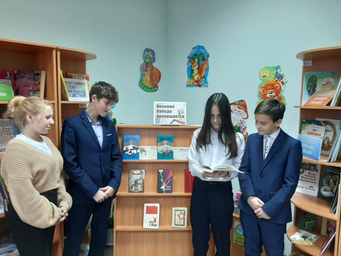 p10 ноября 2022 года в городской библиотеке – филиале №12 был проведен поэтический час «Стихи, опаленные войной», в котором приняли участие учащиеся 7 кл. МБОУ СОШ №13./p p Говорят, когда грохочут пушки, музы молчат. Но от первого до последнего дня войны не умолкал голос поэтов. И пушечная канонада не могла заглушить его. Никогда к голосу поэтов так не прислушивались читатели, как в тяжелые годы Великой Отечественной войны. На мероприятии познакомились с поэтами военных лет. Затем сами учащиеся читали стихи Твардовского, Друниной, Джалиля, Асадова и др./p pЗав. библиотекой - филиалом №12 Салахова Р.С./p