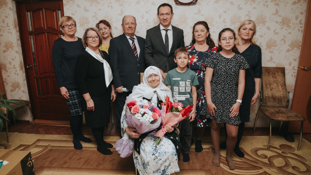 pСегодня свой 95-летний юбилей отметила Газимя Натфулловна Гатина. Поздравить именинницу с круглой датой приехал Глава Альметьевского муниципального района Тимур Нагуманов и председатель Совета ветеранов Альметьевского муниципального района Владимир Яшанин./p pТимур Дмитриевич поздравил Газиму Натфулловну и пожелал ей самое главное - здоровья и долгой счастливой жизни. Так же он отметил, что гордится такими сильными людьми и пожелал юбиляру в будущем отметить столетие и быть в расцвете сил. Глава района вручил поздравительную открытку от имени Президента РФ Владимира Путина./p pГазимя Натфулловна Гатина родилась 29 марта 1927 в Подлесной  Шентале Алексеевского района. Она является тружеником тыла. В семье воспитывалось 9 детей. Отец работал в колхозе, мама занималась воспитанием детей. Училась там же, окончила 4 класса, так как дальше учиться не было возможности, начала работать в колхозе./p pПосле окончания войны Газимя Натфулловна учебу в школе продолжила в Билярске. Проучившись 7 классов, устроилась работать в больницу сестрой-хозяйкой. В 1951 году вышла замуж и родила 3 дочерей и сына.    /p p В Альметьевске Газимя Натфулловна работала продавцом в магазине,  разнорабочей на 4 промысле  НГДУ «Альметьевнефть», в  ООО «АРСУ» в садике №5 ночной  дежурной няней, откуда и ушла на заслуженный отдых./p pИмеет множество медалей и благодарностей за доблестный труд. На сегодняшний день она - бабушка 9 внуков и прабабушка 13 правнуков./p p«Всем огромное спасибо за подарки, за уважительное отношение ко мне. Будьте и вы здоровы, не болейте, живите счастливо. Пусть наши дни будут мирными и радостными, дети», - обратилась Газимя Натфулловна к собравшимся гостям. На ее глазах блестели слезы счастья…/p p /p pПресс-служба Главы Альметьевского муниципального района/p p /p
