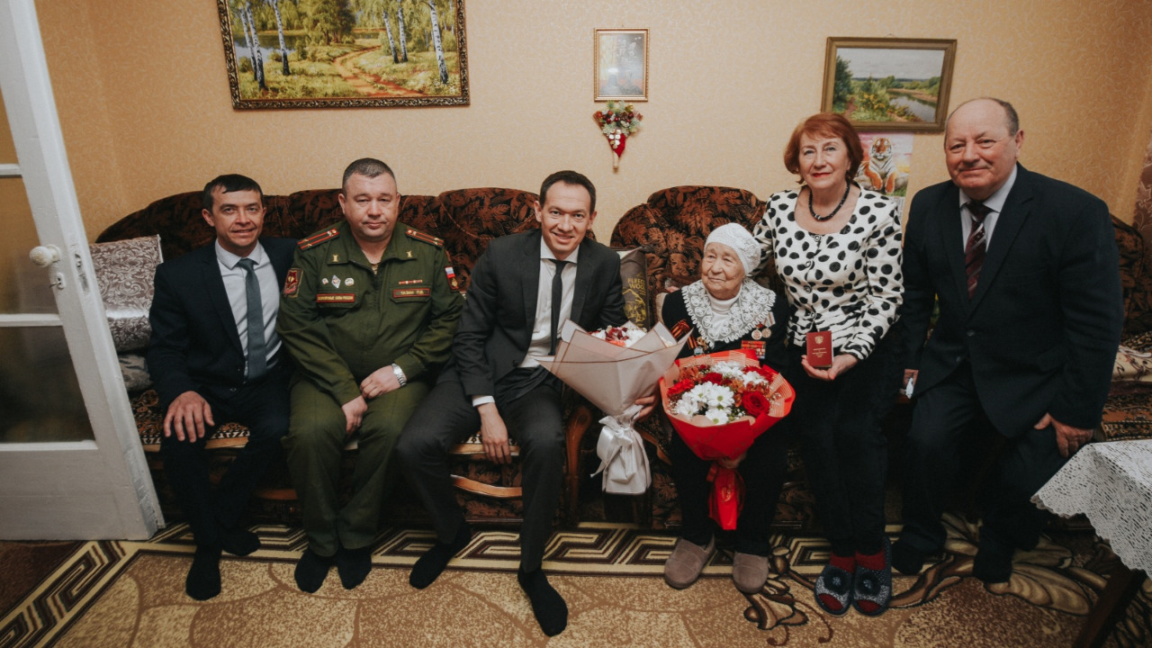 pМы уже отпраздновали 76 годовщину Великой Победы, а война продолжает напоминать о себе. До сих пор боевые медали и ордена находят своих героев. Только теперь их получают дети и внуки, родственники фронтовиков. Потому что самих солдат уже нет в живых./p pСегодня для Людмилы Даниловны Березовой случилось большое событие. Глава Альметьевского муниципального района Тимур Нагуманов вручил ей удостоверение к государственной награде – медаль «За отвагу», предназначавшееся ее родному брату Георгию Даниловичу Звереву, который участвовал в самых жестоких боях Великой Отечественной войны. К несчастью, жизнь его оборвалась в 1943 году./p p«К сожалению, эта награда при жизни не вручалась. Тем не менее, несмотря на истечение такого большого времени, она должна найти своего героя. К сожалению, вашего брата с нами нет, но благодаря его подвигу мы сейчас живем. И Вам огромное спасибо. Желаю Вам крепкого здоровья», - обратился Тимур Дмитриевич к Людмиле Даниловне./p pСама Людмила Даниловна тоже служила в армии в военные годы. Пробыла там 4 года 2 месяца и 19 дней. Испытала все трудности войны, но не растеряла свою жизнерадостность./p p«Вам желаю сибирского здоровья. Я всем желаю сибирского здоровья», - обратилась она к гостям./p pПоздравить Людмилу Даниловну приехали и представители Совета ветеранов, Военного комиссариата и Управления социальной защиты./p p /p p /p pПресс-служба Главы Альметьевского муниципального района/p