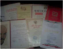В Отечественной войне воевал с мая 1944 по май 1945 г. Орден Славы 3 степени № 287594 -1945,,Орден Отечественной войны IIстепени,"За победу над Германией" № 0093701-1946,"За взятие Вены"-1946,"30 лет Советской Армии и Флота"