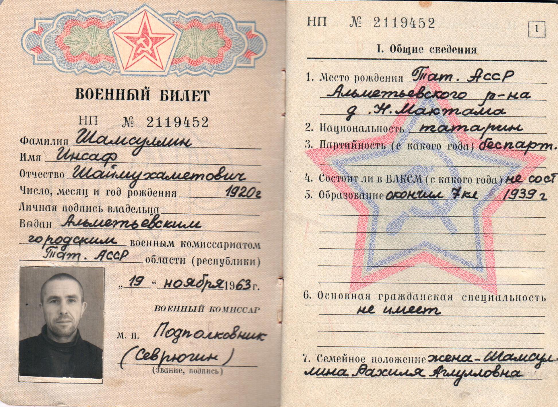 Сержант Инсафетдин Шамсуллович демобилизован в июне 1946 году.