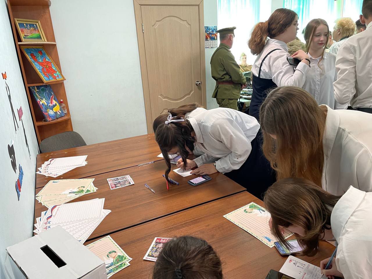Ребята не только смотрели, но и благодаря военно-историческому клубу «Рубеж», смогли познакомиться с оружием военных лет, есть даже оружие, которому 100 лет. Школьники активно приняли участие в акции «Напиши письмо солдату».
