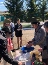 pНа празднике гостей угощали фронтовой, или солдатской кашей. Это незамысловатое блюдо помогало солдатам не только утолять голод, но и поддерживать силы в сражениях. А придумал её русский полководец Александр Суворов. Кашу немного адаптировали для солдат в ВОВ. Даже по прошествии долгих лет она напоминает о полевых кухнях и подвиге Советской Армии./p pВсе и дети, и взрослые с удовольствием угощались кашей ./p p /p p /p p /p pМемориальный музей им.Фатиха Карими/p