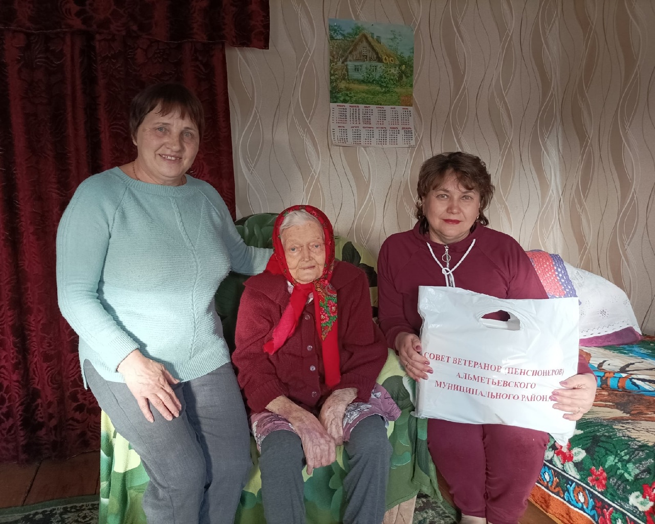 p От имени Главы Кичуйского сельского поселения Тумановой Г. П., председателя Совета ветеранов Альметьевского муниципального района Яшанина В. И., труженицу тыла сотрудники Кичуйского сельского Дома культуры. Пожелали ей доброго здоровья и вручили подарки./p p Балашова Ефросинья Иосифовна родилась 20 сентября 1931 году в село Аппаково в семье крестьян. В 1941 году отец ушёл на войну и 21.02.1943 года погиб. Образование у Ефросиньи Иосифовны пять классов, после 1943 года она начала работать разнорабочим в колхозе родного села./p p В 1949 году с семьёй переехала в село Кичуй (ее мать вышла замуж), продолжила работать в совхозе Акташский вплоть до пенсии. На пенсию вышла уже от совхоза им.Н.Е.Токарликова./p p Замуж вышла 14 апреля 1953 года за Балашова Александра Семёновича, с которым у них родились трое сыновей. На данный момент Ефросинья Иосифовна бабушка 2 внучек, 1 внука и трёх правнуков./p p /p pРДК/p
