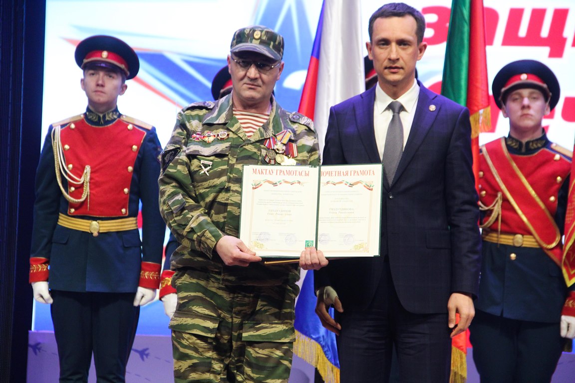 p21 февраля в доме культуры «Нефтьче» состоялся праздничный концерт, посвящённый Дню защитника Отечества. В зале Дворца собрались представители разных поколений нашего города и района: ветераны ВОВ, участники боевых действий в Афганистане и Чечне, действующие офицеры, а также юнармейцы Альметьевского района./p pГлава Альметьевского муниципального района, старший лейтенант запаса Айрат Хайруллин, поздравил всех присутствующих с праздником и выразил отдельные слова благодарности ветеранам ВОВ, участникам боевых действий в Афганистане и на Северном Кавказе за мужество и стойкость в выполнении интернационального долга, пожелал здоровья и благополучия./p p- Этот праздник, объединяет многие поколения людей, и показывает, что суверенитет нашей страны имеющей многовековую историю был достигнут благодаря сильной и боеспособной армии. Служба в вооруженных силах РФ это не только конституционный долг, но и тяжелый ратный труд всех тех, кто ежечасно, ежесуточно стоит на страже государственных интересов, границ и обеспечивает безопасность. И именно защитникам Отечества мы обязаны сегодняшним миром и чистым небом над головой./p pВ Альметьевском муниципальном районе проживают 80 участников Великой Отечественной войны, 24 из них, награждены медалями «За Победу над Германией» и «За Победу над Японией», 6 узников фашистских концлагерей, более 2200 тружеников тыла и свыше 500 воинов-афганцев./p pВ нашем районе ведется постоянная работа по военно-патриотическому воспитанию и физической подготовке ребят к военной службе. На сегодняшний день проходят службу в рядах Вооруженных сил РФ около 500 альметьевцев./p pВ ознаменование празднования Дня защитника Отечества Айрат Хайруллин наградил памятными медалями и Почетными грамотами Совета и исполнительного комитета Альметьевского муниципального района за добросовестный плодотворный труд и активное участие в военно-патриотическом воспитании молодежи ветеранов войны и сотрудников военных служб города./p pДалее военный комиссар города Альметьевск и Альметьевского района полковник Ришат Сабиров со словами приветствия и поздравления обратился к гостям праздника. Он отметил, что День защитника Отечества объединяет всех, кому дорога судьба страны, кто стоит на страже интересов государства, его безопасности, кто мирным трудом и воинской доблестью укрепляет мощь и авторитет нашей страны, добивается благополучия и стабильности её граждан. С особым чувством признательности и уважения Ришат Раинович обратился к ветеранам-фронтовикам, испытавшим всю тягу военных невзгод и оставшимся верными присяге и воинскому долгу./p pПосле официальной части мероприятия для гостей был организован праздничный концерт, в котором приняли участие творческие коллективы района./p p /p pГалина Хасанова, пресс-служба главы Альметьевского муниципального района/p
