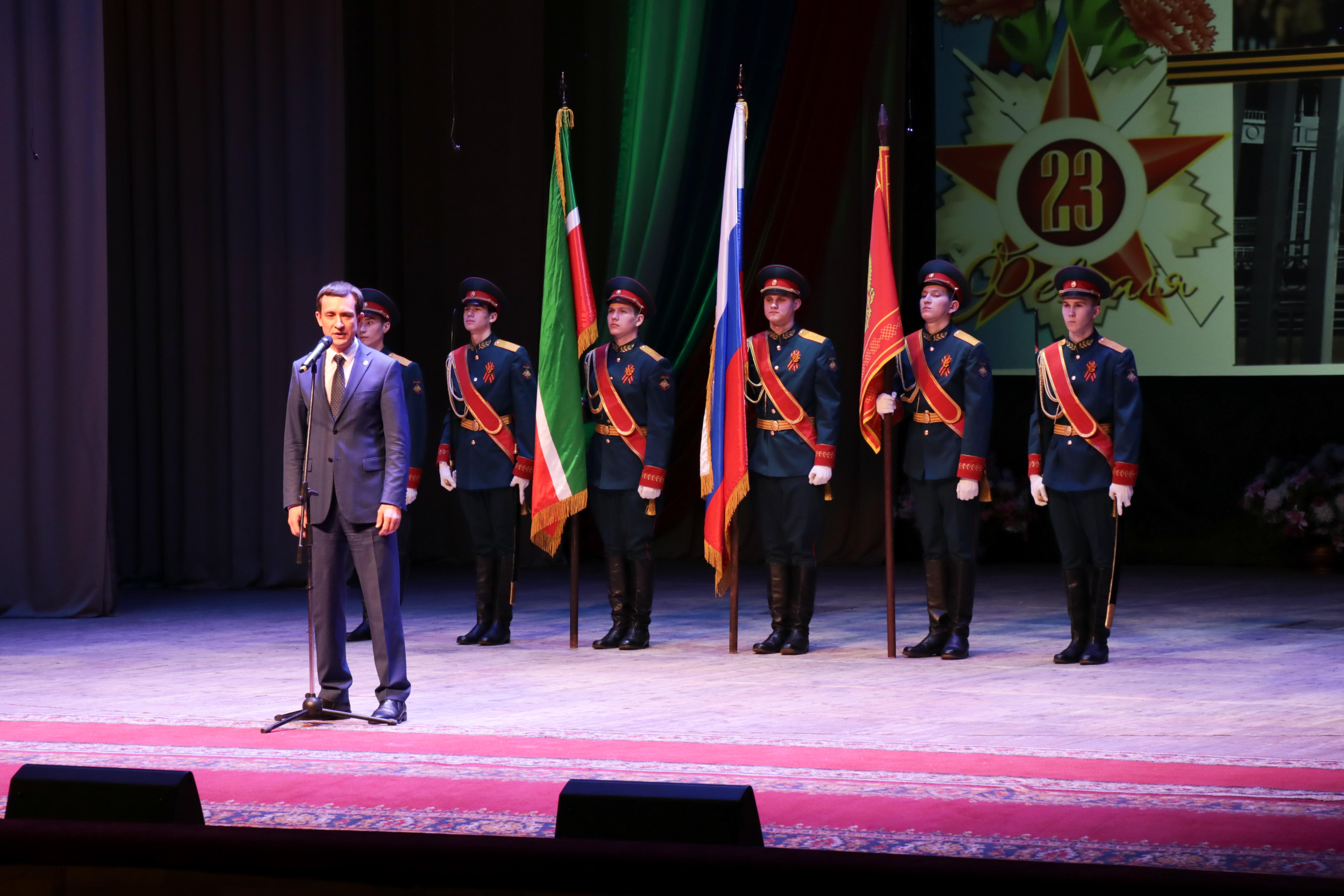 p21 февраля 2019 г.,Торжественное мероприятие, посвященное Дню защитника Отечества, прошло сегодня в ДК «Нефтьче». В зале Дворца собрались представители разных поколений нашего города и района: ветераны Великой Отечественной войны, участники боевых действий, действующие офицеры, руководители предприятий, а также юнармейцы Альметьевска./p pВ своем поздравительном слове Глава района, старший лейтенант запаса Айрат Хайруллин отметил, что День защитника Отечества – это всенародный праздник, связанный с победами российского оружия на суше и на море, с традициями боевого братства, которые передаются от поколения к поколению, с мужеством и доблестью тех, кто с честью выполнил свой воинский долг и кто сегодня находится в рядах Вооруженных сил нашей страны, это день настоящих мужчин, защитников в самом широком смысле этого слова./p p- Мы гордимся подвигом ветеранов Великой Отечественной войны. Героизм и отвагу проявили наши земляки в боевых действиях в Республике Афганистан, Чеченской республике и Северо-Кавказском регионе, вооруженных конфликтах на территории Республики Таджикистан, Абхазии и Южной Осетии, Сирийской Арабской Республики, при ликвидации последствий аварии на Чернобыльской АЭС. Многие из них сидят в этом зале, поблагодарим их от имени всех альметьевцев. Вы достойны огромного уважения и подражания. Молодому поколению есть на кого равняться, у кого учиться мужеству и самозабвенной любви к своей стране и своему району! – отметил Айрат Ринатович./p pВ период Великой Отечественной войны Альметьевским и Акташским районными военными комиссариатами было призвано и отправлено в войска по мобилизации 18640 человек. Из них вернулось с войны 10131 человек, а 8509 человек погибло и пропало без вести. Герои Советского Союза Ахмадуллин Мутык Ахметзянович, Токарликов Никита Евдокимович, полные кавалеры Ордена Славы Алаев Михаил Константинович, Салахутдинов Гарафутдин Салахутдинович, Темиргалеев Курбан Тимергалеевич навсегда вписали наш район в историю Воинской Славы России! На сегодняшний день в городе Альметьевск и Альметьевском районе проживают 64 участника Великой Отечественной войны./p p- Уважаемые защитники Отечества! Дорогие ветераны! Искренне, от всего сердца поздравляю Вас с праздником – Днем защитника Отечества. Сегодня в каждом доме отдают дань уважения тем, кто в трудное время войны мужественно защищал свою Родину. Защитников Отечества чтит вся страна. Но наибольшее уважение вам, дорогие ветераны. Перед вами мы склоняемся, у вас учимся любить Родину. Искренне желаю вам крепкого здоровья, тепла и любви близких людей, уважения, радости и счастливых дней./p pЭтот день для всех нас стал символом верности долгу и служения Родине. Он отмечается в каждой семье. В День защитника Отечества добрые слова звучат для всех мужчин – деятельных, сильных, которые оберегают от трудностей и невзгод свои семьи, несут ответственность за настоящее и закладывают крепкий фундамент будущего района, республики и России. Именно они были и остаются оплотом стабильности и спокойствия нашего государства. Желаю вам достижения поставленных целей, крепости духа, профессиональных успехов. Пусть мир и понимание царят в доме, где вас любят и ждут, - выразил свои искренние пожелания Глава района./p pНачальник отдела военного комиссариата РТ по городу Альмет