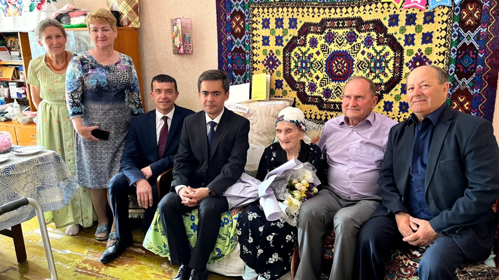 pПоздравления с вековым юбилеем принимала 27 июня жительница Альметьевска, ветеран труда, труженица тыла Дмитриева Ольга Никифоровна./p pПоздравить долгожительницу сегодня приехали руководитель исполкома Альметьевского района Айдар Каюмов, председатель Совета ветеранов Владимир Яшанин, начальник Управления социальной защиты Рустем Гараев./p p «100 лет – это такой возраст, когда Вам честь и хвала, что прошли такой тяжелый путь. Мы благодарим Вас за труд. Благодаря ему мы имеем то, что сейчас есть у нас», - отметил почтенный возраст долгожительницы Айдар Маратович и пожелал ей крепкого здоровья./p pОльга Никифоровна Дмитриева родилась 27 июня 1922 года в деревне Васильевка (Письмянского) ныне Альметьевского района. Как и полагается детям того времени, начала свою трудовую деятельность достаточно рано. Увидела всю горечь и тяжесть жизни военных лет./p pУшла на пенсию в 1979 году с ООО «Промтранс-А». Родила и вырастила сына Владимира. Есть внучка, которая сейчас живет в Америке, работает там журналистом. Бабушка очень рада творческим успехам своей внучки./p p «Спасибо за оказанное внимание, что не забываете. Чувствуется забота. Благодаря заботе администрации – это тоже очень помогает и эмоционально, и материально», - поблагодарил гостей сын именинницы./p p /p pПресс-служба Главы Альметьевского муниципального района/p