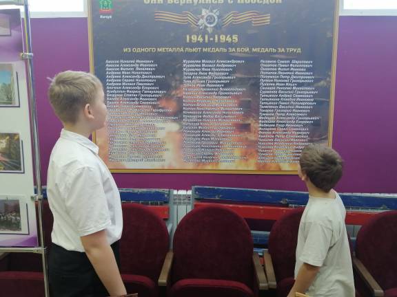 pВ Кичуйском сельском доме культуры рассказали ребятам о том, какими дорогами жестокой войны пришлось пройти нашим землякам, в каких боях они участвовали, какие подвиги совершали. Показали альбомы с фотографиями, наградами. Ребята с интересом смотрели, читали, искали в книге Памяти фамилии своих прадедов. В завершении почтили память воинов - земляков минутой молчания./p