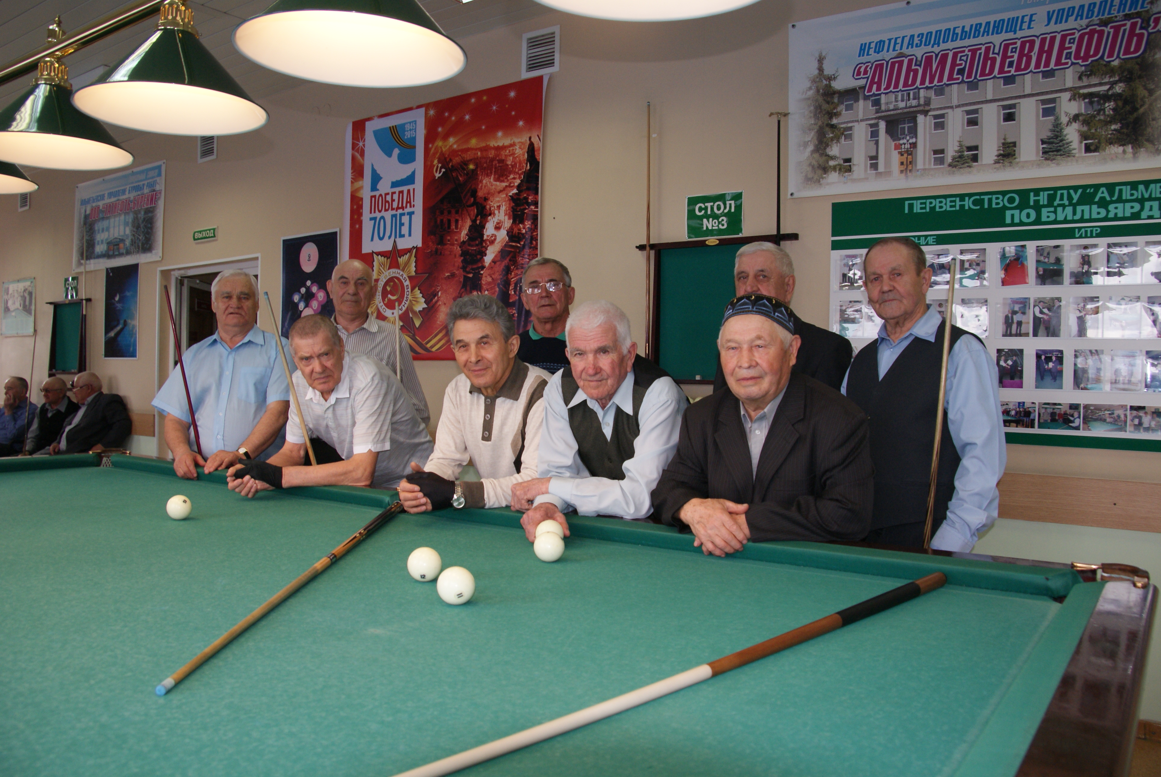 p23 апреля 2015 года в спорткомплексе ОАО «Татнефть» состоялась четвертая спартакиада по спортивному бильярду среди ветеранов и пенсионеров Альметьевского Муниципального района и города Альметьевск.В спартакиаде приняло участие 45 человек, в том числе:/p pВ возрасте 60-69 лет - 28 участников./p pВ возрасте 70-79 лет – 10 участников./p pВ возрасте 80 лет и старше – 7 участников./p pВ упорной борьбе места распределились:/p pВозраст 60 – 69 лет./p p1 место Сагиров Рустам – НГДУ «Альметьевнефть»./p p2 место Ефремов Владимир – Альметьевский трубный завод./p p3 место Власов Ботис – УК «Татнефтегазстрой»./p pВозраст 70-79 лет./p p1 место Муртазин Тельман – ООО «Татнефть-Энергосервис»./p p2 место Седунов Валентин – ООО «Татнефть-РемСервис»./p p3 место Потапов Александр – НГДУ «Джалильнефть»./p pВозраст 80 лет и старше./p p1 место Соколов Анатолий - УК «Татнефтегазстрой»./p p2 место Сайдашев Наиль – УК «Татнефть-МехСервис»./p p3 место Валеев Хаджи – управление «Татнефтегазпереработка»./p p /p pВ командном зачете:/p p1 место НГДУ «Альметьевнефть»./p p2 место ООО «Татнефть-РемСервис»./p p3 место управление «Татнефтегазпереработка»./p p /p pГлавный судья соревнований:/p pСтарший тренер спорткомплекса ОАО «Татнефть» Равиль Писаренко/p