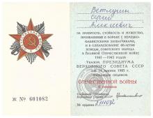 Демибилизован на основании Указа Президиума Верховного Совета Союза ССР от 23.06.1945 г.