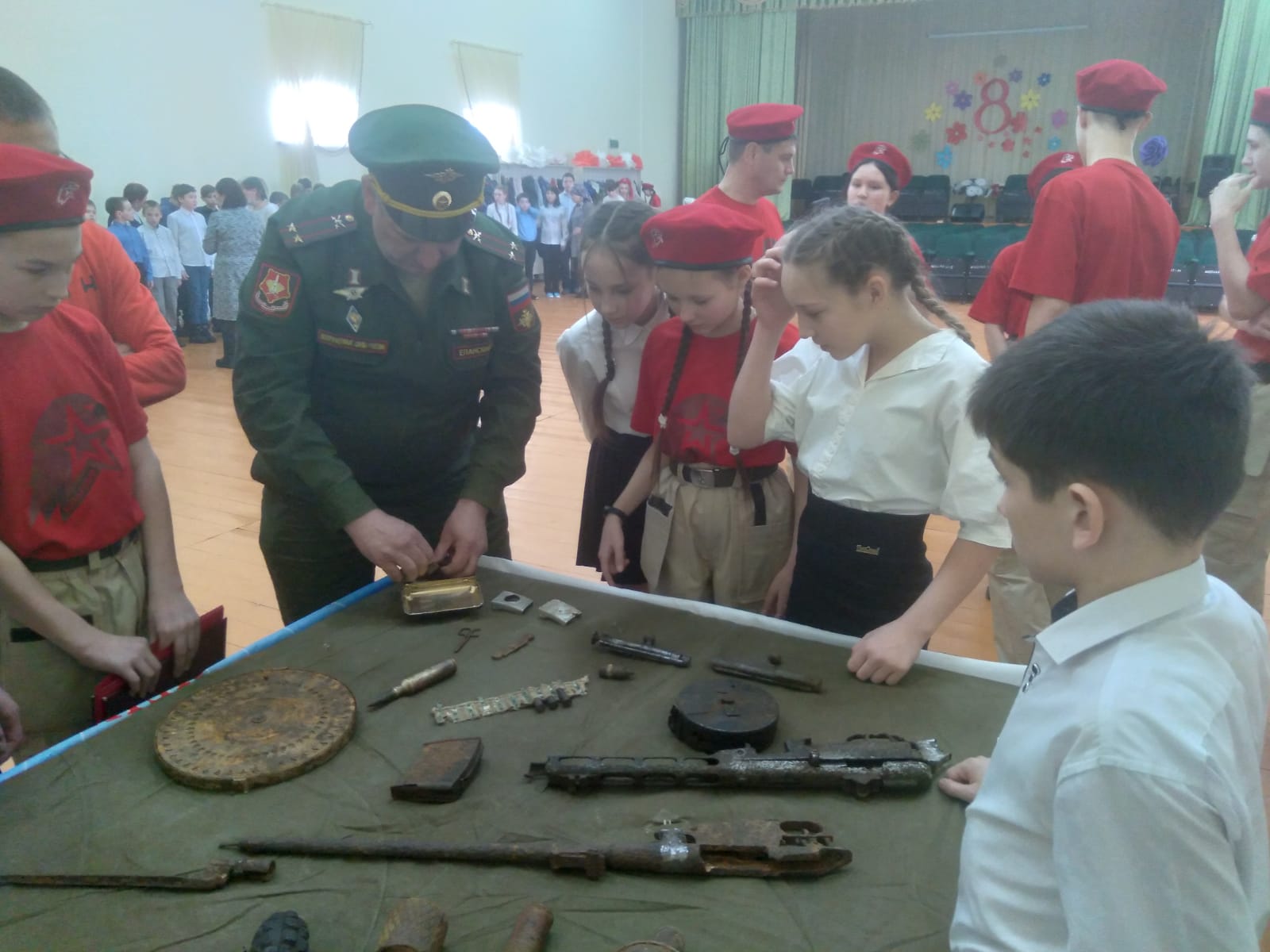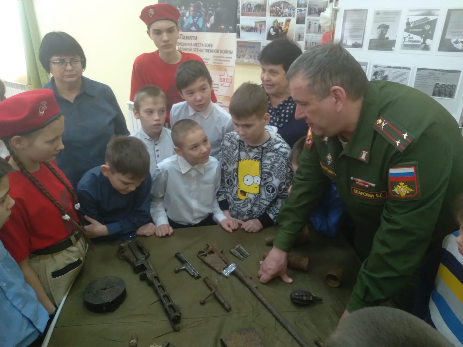 p17 марта 2022 года состоялась встреча учащихся и отряда юнармейцев Новокашировскойсанаторной школы-интернат с заведующим подросткового клуба «Ровесник» подполковником Еланским Евгением Геннадьевичем./p pОн привез с собой наглядные выставочные макеты и экспозиции боевых орудий. Евгений Геннадьевич рассказал юнармейцам, что в Альметьевске активно развивается поисковое движение. Отряды «Десант», «Форпост» и «Кадет» выезжают в полевые поисковые экспедиции по местам боевой славы. За последние три года на территории Волгоградской, Ленинградской и Псковской областей проведено 7 экспедиций, по результатам которых найдено 35 останков бойцов Красной Армии. /p pЕвгений Геннадьевич обратил внимание учащихся, какая важная и ответственная задача на них возлагается в будущем – быть защитниками страны./p p /p p /p pГалиев Султан Агисович,/p pвоспитатель,/p pГБООУ Новокашировская санаторная школа-интернат/p p /p