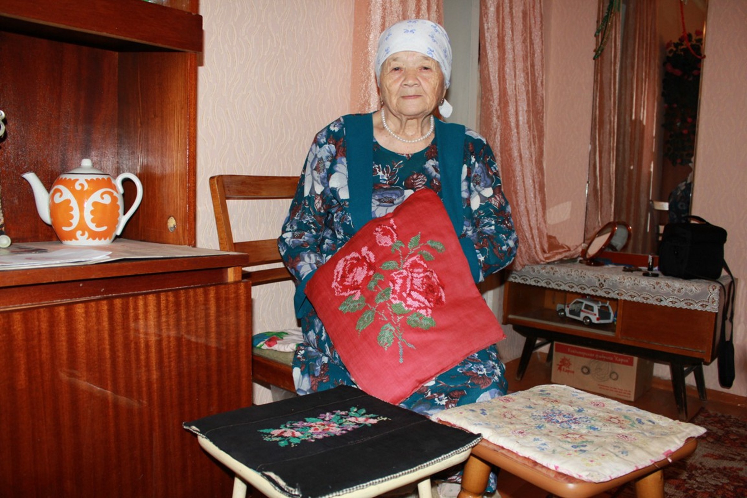p class="rtejustify"«О, сколько вновь открытий чудных готовят юбиляры нам», - хочется воскликнуть, перефразируя классика, после каждой встречи с очередным именинником. И удивиться их скромности, трудолюбию и жизнелюбию./p p class="rtejustify"Кашифа Хазиевна Валиева принимала 7 декабря 2015го года поздравления с 85-м годом рождения от имени Совета ветеранов,Управления здравоохранения АМР МЗ РТ и руководства Альметьевского противотуберкулезного диспансера, как неутомимая труженица тыла и добросовестный боец невидимого производственного фронта. Награждена множеством Почетных грамот за добросовестный труд и благодарностями предприятий, в том числе и фотографией на Доске Почета./p p class="rtejustify"С 1961-го по 1988-й год работала Кашифа Хазиевна прачкой, машинистом по стирке белья в Альметьевском противотуберкулезном диспансере. Белье кипятили в баках сначала и полоскали руками, позже появились большие стиральные машины. До медицинского учреждения работала разнорабочей в строительных управлениях полтора года. А еще раньше «работаламамой троих детей», как она сама говорит./p p class="rtejustify"Сегодня внучка ее Эльза Тимеркаева трудится в медсанчасти ОАО «Татнефть» и г. Альметьевска. А дочь Чачка Низамиева с 30-летним стажем в строительной отрасли вложила частицу своего труда в строительство РМДЦ, других зданий медицинских учреждений,домов и социально-культурных объектов Альметьевска./p p class="rtejustify"В 1951-м году Кашифа вышла замуж и была совершенно счастлива, потому что кончилась война и потому, что стала она городская: из Сабанчи муж привез ее в Альметьевск. Деловитости и энергичности научилась она у мамы своей Зайтуны, а трудовые навыки почерпнула детстве, когда до начала Великой Отечественной и во время нее вместе с другими подростками копала, пилила, пахала, плакала и вновь пахала. Без сил, без еды, но с верой./p p class="rtejustify"На вопрос о любимом занятии, задумавшись, ответила, что все любит и все умеет. По настоятельной просьбе гостей извлекла из сундука свое рукотворное искусство: подзорник и покрывало, связанные крючком из простых «хэбэшных» ниток. И про «сидушки» на табуретки вспомнила, вот они, узорные. Вас научить? А что, можно и мастер-класс организовать для всех желающих. Но это будет совсем скоро и с другими действующими лицами. А мы еще раз поздравляем вас, Кашифа Хазиевна, будьте также бодры и здоровы./p p /p p /p pЛилия Сабитова, пресс -служба управления здравоохранения АМР/p