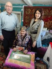 Опубликовано пн, 06/02/2023 - 15:09 пользователем TatFrontu.rupСегодня свое 90 летие отмечает жительница с.Тихоновка Смолькина Ксения Михайловна. С этой знаменательной датой юбиляра поздравили Глава поселения Р.А. Бадретдинов и председатель совета ветеранов поселения Р.Г.Корнаухова. /p p Ксения Михайловна родилась 6.02.1933 г. в с.Тихоновка Альметьевского района.br / Её детство прошло в военные годы. Отца и двух старших братьев призвали на войну. Она осталась за старшую в семье. Готовила дрова для печки, собирала мерзлую картошку в поле. Надо было чем то кормить младших братьев и самой утолить голод. Она была самостоятельная заботливая,br /
