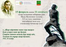 Опубликовано вт, 16/02/2021 - 12:52 пользователем TatFrontu.rup15 февраля 2021 г. в Альметьевске состоялось возложение цветов к стеле Героя Советского Союза Мусы Джалиля, посвященное 115-летию со дня рождения поэта. Почтить память поэта пришли представители учреждений, предприятий и организаций, школьники, студенты, поклонники творчества. Муса Джалиль героически сражался за Родину во время Великой Отечественной войны, был тяжело ранен и взят в плен. Находясь в плену, поэт вёл подрывную работу, организовывал побеги, на обрывках бумаги огрызком карандаша писал великие произведения Моабитской тетради.