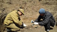 pВойна не окончена, пока не похоронен последний солдат… С 22 апреля 2017 года на протяжении двух недель альметьевские ребята принимали участие на раскопках на территории Россошинского мемориала Городищенского района Волгоградской области. Напомним, вахта памяти в этом году собрала под своим знаменем несколько команд из разных городов России, включая Альметьевск. Из нефтяной столицы на раскопках побывали поисковый отряд «Патриот» совместно с отрядом «Десант» и поисковой группой «Кадет». Немного о быте лагеря. Каждый день юных поисковиков начиналось с тренировки.