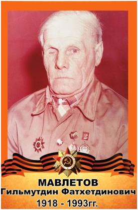 Мәүлетов Гыйлметдин Фәтхетдин улы-1918 елда Әлмәт районы Миңлебай авылында туган.1942 елда сугышка киткән,1944 елда кайткан. Батырлыклары өчен орден, медальләр белән бүләкләнгән. 1993 елда вафат булган, Миңлебай авылында җирләнгән.