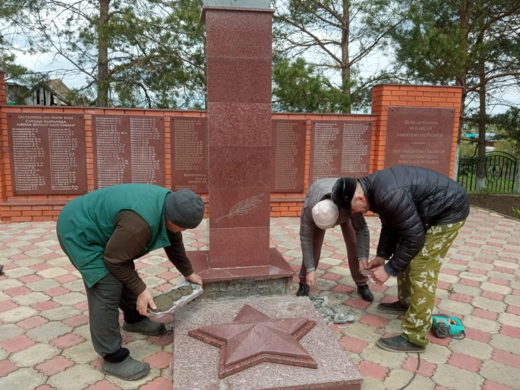 искә ала... Яшь буын исә, тыныч тормыш өчен шушы авылдан күпме кешенең сугышка киткәнлеген, күпмеләренең яу кырында ятып калганлыгын, хәбәрсез югалганлыгын барлый. Исемлектә бабаларының исемнәрен күргәч, зур горурлык хисе кичерәләр.Бөек Җиңүнең 80 еллыгын бәйрәм итүгә санаулы көннәр генә калып бара . Бөтен ил буенча һәйкәлләр, обелисклар, монументлар янындагы территорияләрне җыештыру буенча экологик өмәләр оештырыла .Шул уңайдан Х.Әхмәтшин исемендәге авыл тарихы музее хезмәткәрләре Бөек Ватан сугышында һәлак булган сугышчыларга куелган һәйкәл янында җыештыру оештырдылар. һәйкәлләрне төзекләндерү- чиста саклау сугыштан үткән буын алдында, аларның батырлыгы һәм ныклыгы алдында безнең төп бурычыбыз . Истәлекле урынны төзекләндерү чистарту - бу безнең эшләрнең бик аз өлеше, алар ярдәмендә без киләчәктә тыныч күк өчен үз тормышларын калдырган һәркемгә рәхмәтебезне белдерәбез. Безнең төп бурычыбыз-бу урыннарны мөмкин кадәр матурырак саклау. Гомерләре бәрабәренә безгә тынычлык һәм азатлык бүләк иткән кешеләрнең истәлеген мәңге истә тотачакбыз һәм хөрмәт итәчәкбез.