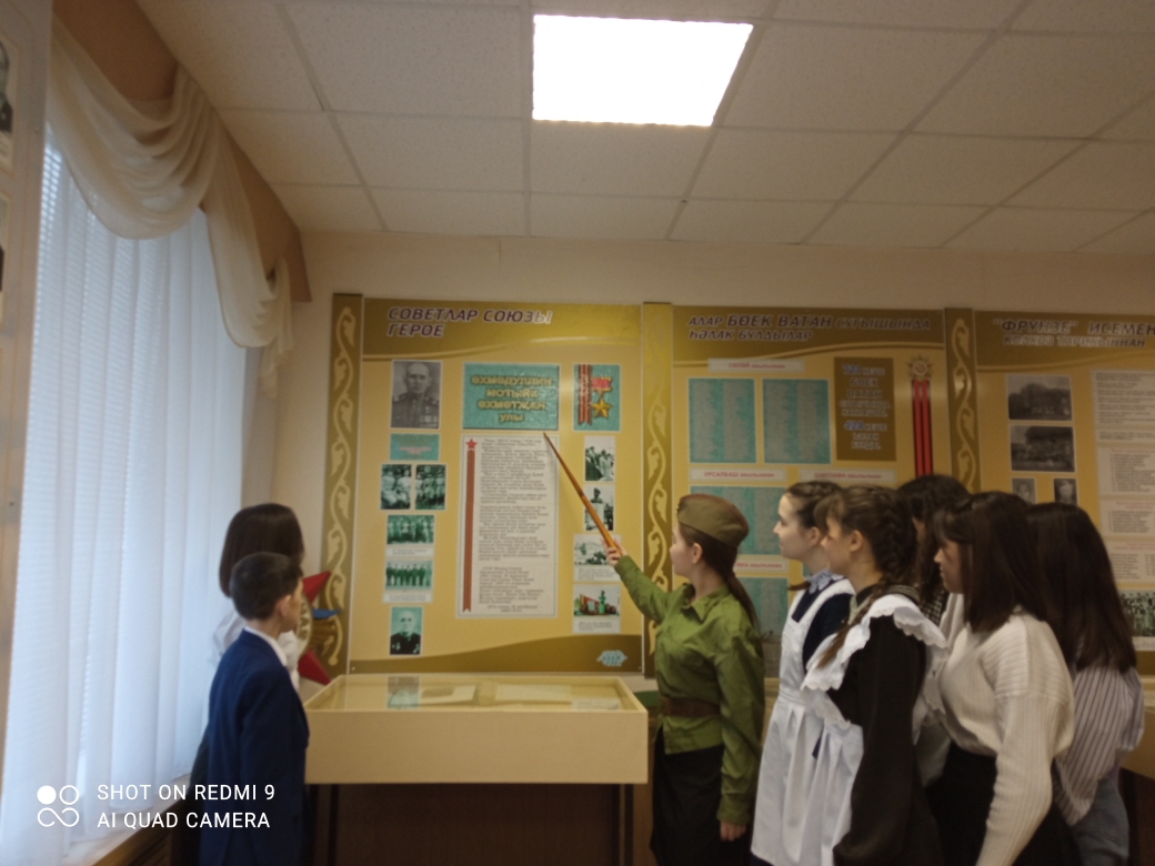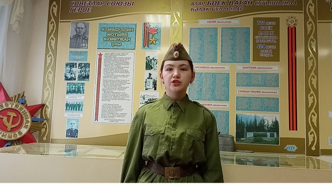 p1941 елның 22 июнендә немец-фашист илбасарлары безнең илебезгә басып керделәр, шәһәрләрне, авылларны талый, яндыра башладылар. Халкыбыз, бердәм булып, дошманга каршы көрәшкә күтәрелде./p pИлебезнең барлык халыклары белән бергә авыр көрәштә татар язучылары да катнаштылар; язучы, шагыйрь, журналист буларак фронт газеталарында хезмәт иттеләр; кулларына корал алып, алгы сызыкларда сугыштылар; ялкынлы сүз белән җиңүгә ярдәм иттеләр. Әдәбият Җиңүгә ышанычны ныгытуга зур иҗат ялкыны белән хезмәт итте./p p21 нче март көннеӘлмәт районы Сөләй урта мәктәбенең 8 нче сыйныф укучылары татар әдәбияты дәресен мәктәпнең Туган якны өйрәнү музеенда уздырдылар. Алар дәрестә сугыш темасына язылган әсәрләрне искә төшерделәр. Миргазыян Юнысның “Шәмдәлләрдә генә утлар яна” әсәренә анализ ясадылар. Укучылар Муса Җәлилнең, Абдулла Алишның, Фатих Кәримнең сугыш темасына иҗат ителгән шигырьләрен яттан сөйләделәр. Мәктәп музееның бер бүлеге авылдашыбыз Советлар Союзы герое Мотыйк Әхмәтҗан улы Әхмадуллинга багышланган.Укытучы Гәрәева Г.А. укучыларны шул бүлектәге мәгълүматлар белән таныштырды, тормыш юлы, сугыштагы батырлыгы турында сөйләде. Укучылар дәресне бик кызыксынып тыңладылар, үзләре өчен күп белем тупладылар./p p /p pГәрәева Гөлмира Абдулла кызы, туган (татар) теле һәм әдәбияты укытучысы, /p pТатарстан Республикасы Әлмәт муниципаль районы муниципаль бюджет гомуми белем учреждениесе “Галеев Р.Г. исемендәге Сөләй урта гомуми белем мәктәбе”/p