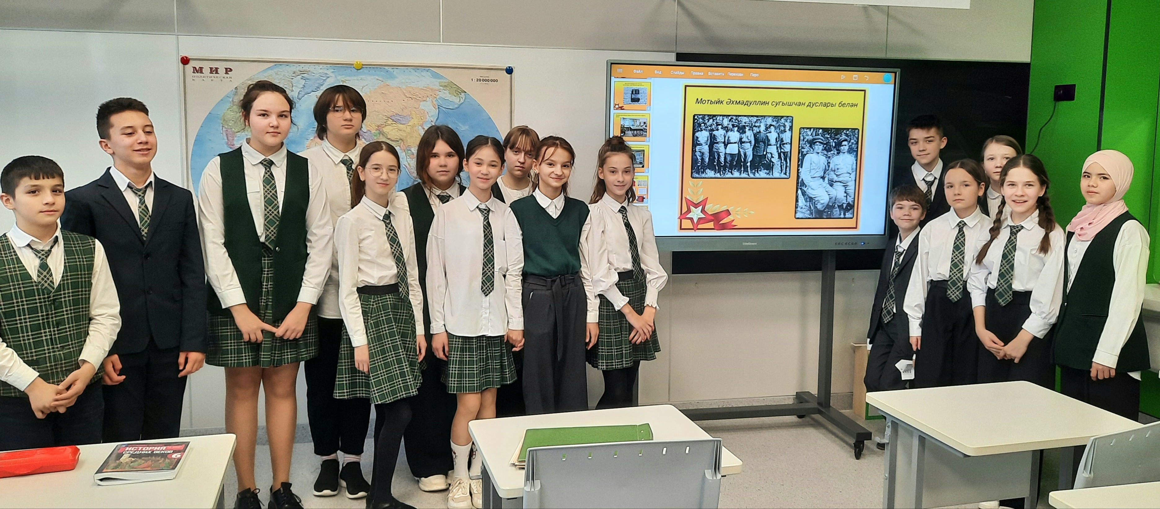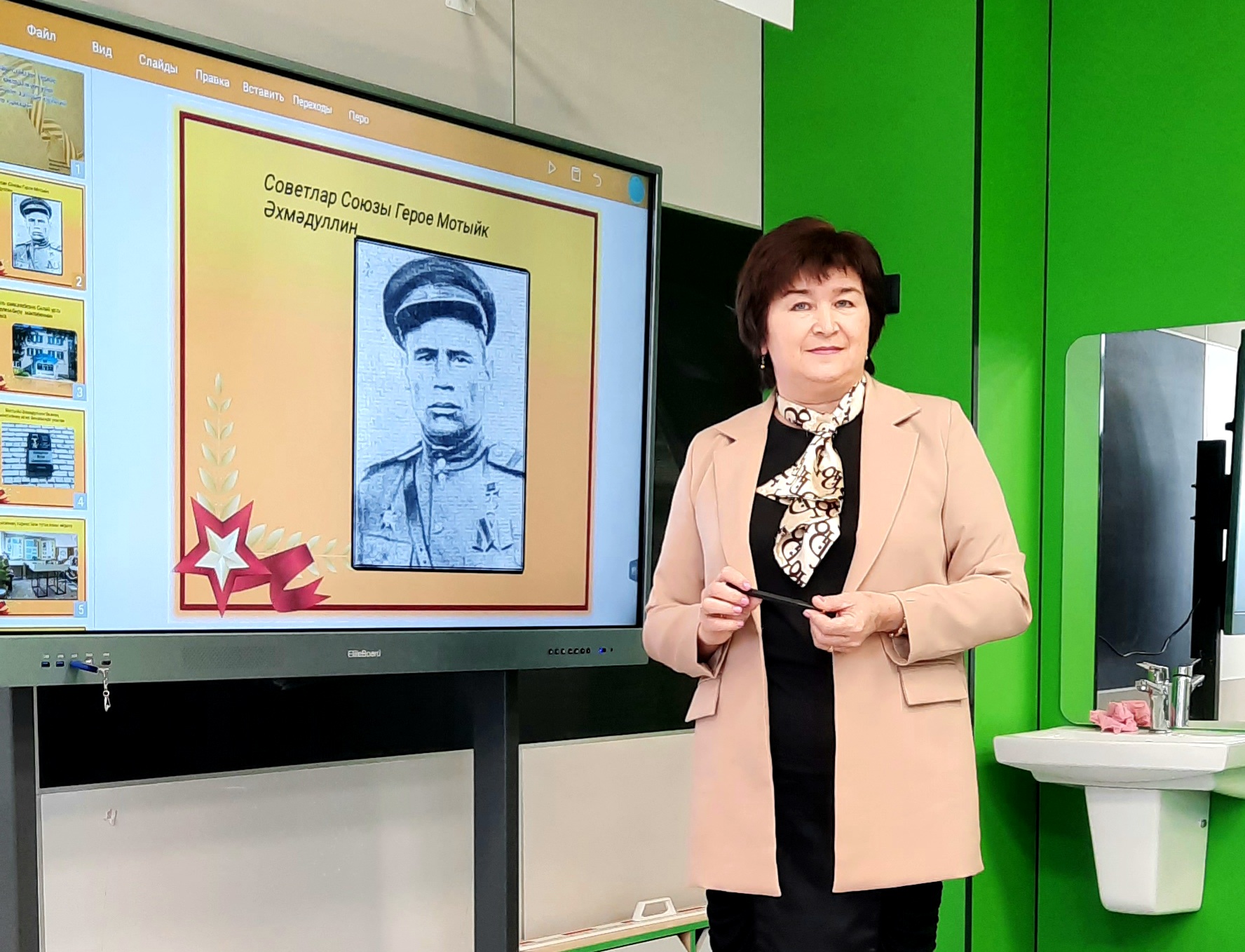 p “Адымнар-Әлмәт күптелле гимназиясе”ндә укучы һәр бала үзенең туган ягының тарихын, данлыклы якташларын, геройларын белергә тиеш. Гимназия әле быел гына ачылса да, анда инде аерым традицияләр урнашып килә, патриотик юнәлештә системалы эш алып барыла. Һәр айның бер көне Бөек Ватан сугышына багышлана, бу көнне батырлык дәресләре, сыйныфтан тыш чаралар үткәрелә. Гимназиядә Бөек Ватан сугышына багышланган экспозиция-күргәзмә оештыру өчен мәгълүматлар, экспонатлар туплау башланды. “Адымнар”ның һәр укучысы үзенең нәсел шәҗәрәсен төзү, гаиләсенең сугыш белән бәйле булган тарихын өйрәнү эше белән мәшгуль./p p Әлмәт районында төрле сугышларда тиңдәшсез батырлыклар күрсәткән геройлар күп. Шулар арасында Бөек Ватан сугышында Советлар Союзы Герое исеменә лаек булган 2 герой бар – Мотыйк Әхмәдуллин һәм Никита Токарликов. 9 декабрь – Ватан геройлары көне уңаеннан 6 сыйныф укучылары өчен “Герой эзләре буйлап” дигән темага батырлык дәресе оештырылды. Укучылар Советлар Союзы Герое Мотыйк Әхмәдуллинның тормыш юлы, батырлыгы турында укыдылар, өйрәнделәр, фотолар карадылар. Әлмәттә һәм Әлмәт районында Мотыйк Әхмәдуллин исеме белән бәйле урыннарны өйрәнделәр. Өйрәнгән материалларга таянып, укучылар “Герой эзләре буйлап“ дип исемләнгән экскурсия маршруты төзеделәр. Әлегә бу сәяхәтнең маршруты виртуаль, ә җәй көне укучылар герой белән бәйле булган истәлекле урыннарга чын сәяхәт оештырырга теләк белдерделәр. Ә аннары үзләре экскурсовод булып, шәһәр кунаклары өчен өч телдә – татарча, русча, инглизчә экскурсияләр оештырырга теләүләрен әйттеләр. Укучыларның энтузиазмы, кызыксынучанлыклары таң калдырды мине. Туган якларының тарихын, кешеләрен, аларның батырлыкларын белсеннәр иде балалар, битараф булмасыннар иде. Тарихын белгән баланың адымнары нык була./p p /p p /p p Гатауллина Гөлнара Әнвәр кызы/p p “Адымнар-Әлмәт күптелле гимназиясе”нең югары категорияле тарих һәм җәмгыять белеме укытучысы./p
