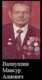 pМансур Али улы Вәлиуллин Баку шәһәрендә туып үскән. Сугыш алдыннан ул хәрби хезмәткә алына. /p p1941 елның 22 нче июнендә фашистлар Германиесе Советлар Союзына мәкерле рәвештә һөҗүм иткәннән соң, илдә бар халык илбасарларга каршы күтәрелә. Безнең Мансур бабабыз да сугышның беренче көнендә үк фронтка – Ватанны сакларга китә. Ул бу вакытта 796 нчы укчы полктагы 318 нче укчы дивизиянең өлкән лейтенанты була. Ул 1943 нче елның 15нче сентябрендә барган сугышта бик зур батырлык эшли – үзенең гәүдәсе белән дошман амбразурасын каплый.../p p Бөек Ватан сугышы чорында Александр Матросов батырлыгын 438 сугышчы кабатлаган. Шуларның тугызы гына исән калган. Исән калганнарның икесе –Татарстаннан. Ике бәхетленең берсе ‒ безнең Мансур бабабыз. Ул алты ай буе хәрби госпитальдә ятып, яраларын дәвалый һәм туган якларга әйләнеп кайта./p p Аның батырлыгын дәүләт югары бәяли ‒ “Сугышчан Кызыл Байрак” һәм “Дан”орденнары белән, “Батырлык өчен”, “Сугышчан хезмәтләре өчен” медальләре белән бүләкли./p p /p pАлинә Мифтахетдинова, /p pӘлмәт шәһәренең 5нче гимназия укучысы/p p /p