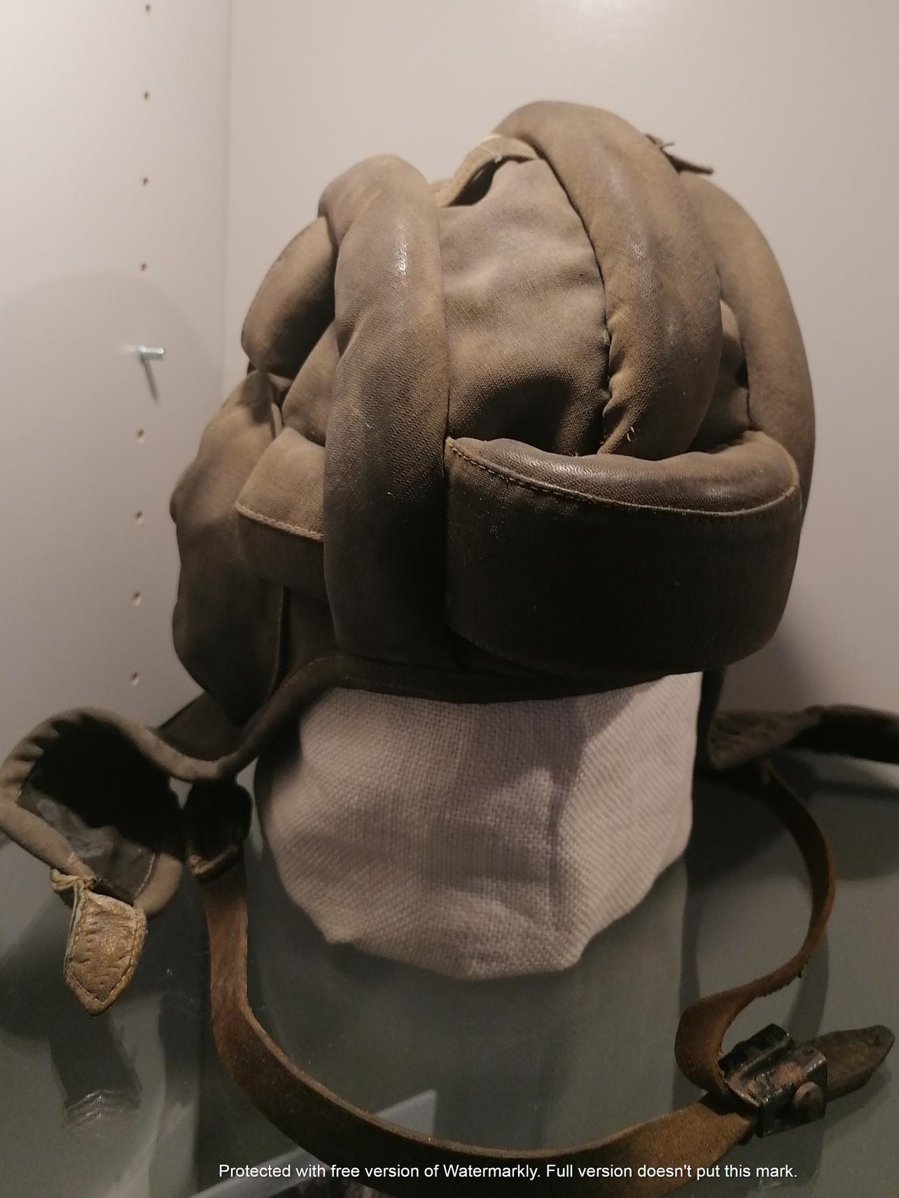 pТанкистның хәрбер киемнәренен танылган элементларының берсе-танк шлемы. Мондый баш киеме һәрвакыт берүк функцияләрне үти: танкистны җәрәхәтләрдән саклау һәм элемтларын итү.br / 1938 елның техник шартларына ярашлы рәвештә совет танкистлары өчен берничә шлем варианты каралган: күн, кирза белән капланган, кирза һәм тиредән. Танкистның тире шлемын кара шевреттан тегәләр, подкладка буларак кара-зәңгәр байка кулланыла. Маңгайдан баш артына кадәр шлемда амортизатор ролен үтәүче өч валик урнашкан, алгы өлешендә налобурнашкан. Калфакның-якларында уртада тегелгән бер валик яки веер белән урнашкан өч валик урнашкан. Совет шлемы, бөтен совет хәрбер машинасы кебек, нинди дер консерватизм белән аерылып тора, шуңа күрә 80 еллык тарихында танк шлемы бернинди үзгәрешләр кичерми.br / Х.Әхмәтшин исемендәге Елхово авылы тарихы музее фондларында 1938 елгы үрнәктәге шлем саклана (фото no 1), ул музейга Түбән Абдул авылында (ТАССРның Беренче Май районы) туган, Бөек Ватан сугышында катнашучы Гатин Шакир Гатинович (фото no 2,3)тарафыннан 1918 елда туган. Гатин ш.г. артиллерия полкында орудие төзүче булып хезмәт итә. 1943 елның 5 июлендә Курск янында Прохоровка станциясе янында 4 немец танкын бәреп төшерә, моның өчен Кызыл Йолдыз ордены белән бүләкләнә.br / Автор6 спеөиалист музея истории села Елхово имени Х.Ахметшина./p